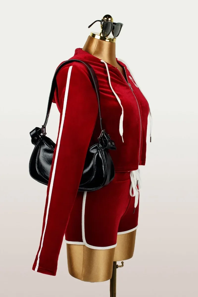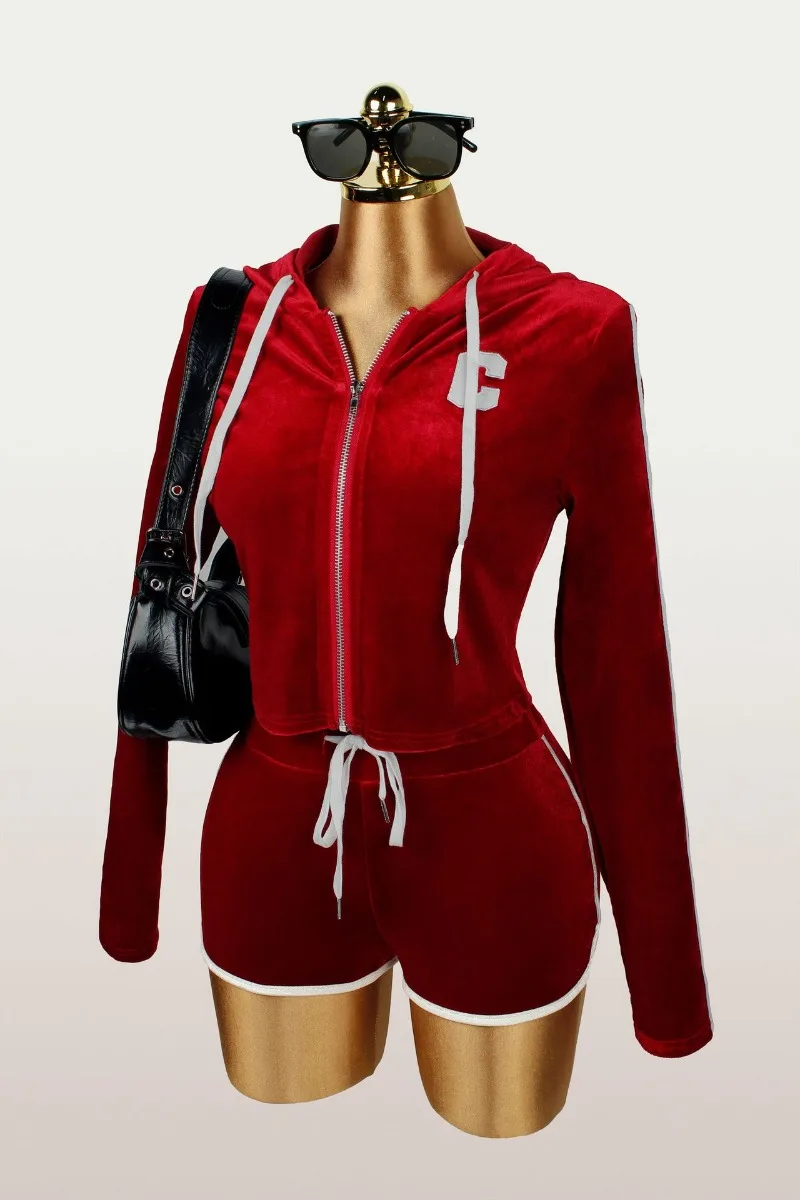 Lunivop Women Tracksuit Velvet 2 Piece Set Letter Embroidery Long Sleeve Zipper Hooded Jackets Crop Top + Shorts Casual Sporty Suits