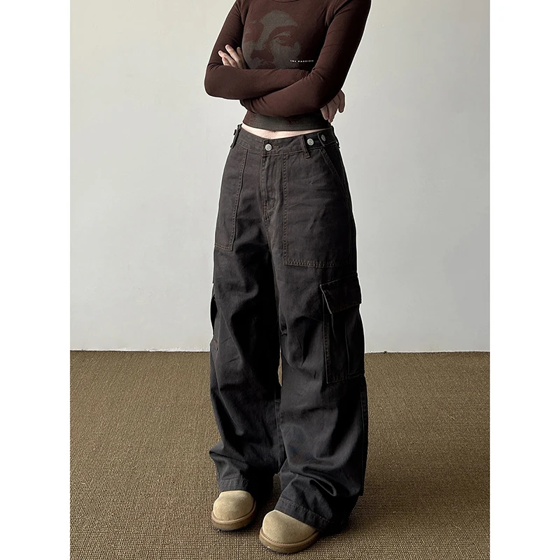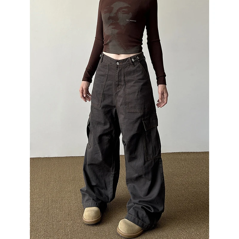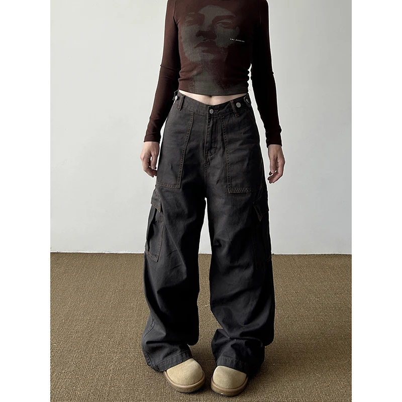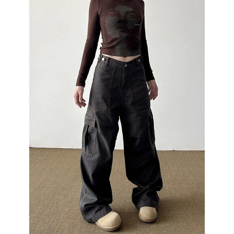 Lunivop Women Vintage High Waist Loose Pockets Jeans Streetwear Trashy Style Pants 2024 Autumn Vintage Y2K Wide Leg Baggy Denim Trouser