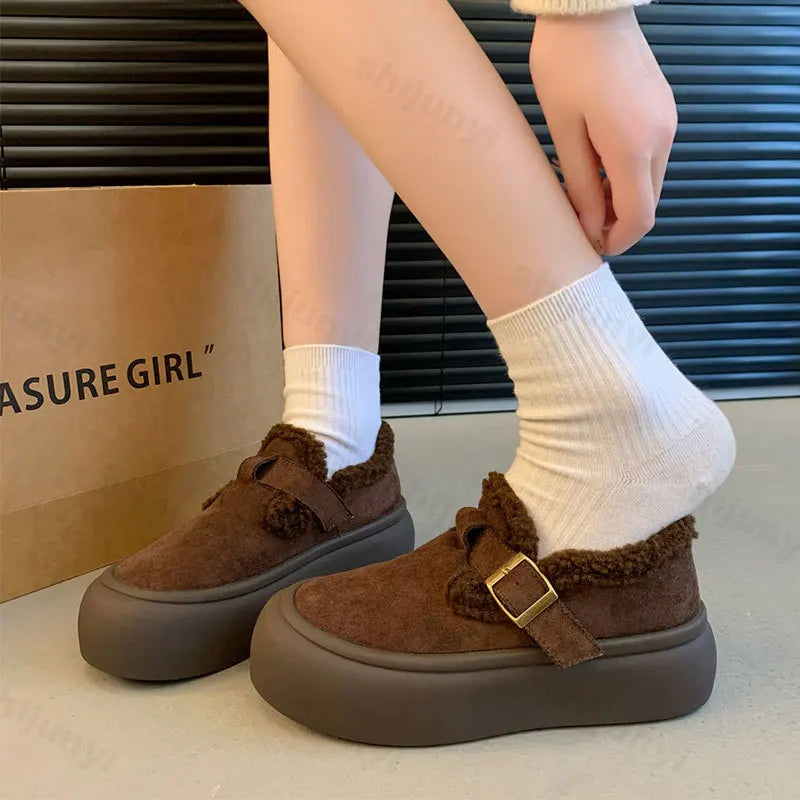 Lunivop Women Winter Casual Shoes New Moccasins Soft Platform Non-slip Loafers Fashion Warm Plush Slip on Female Cotton Shoes