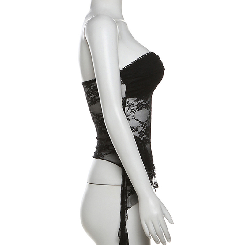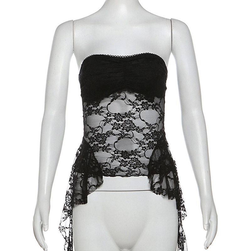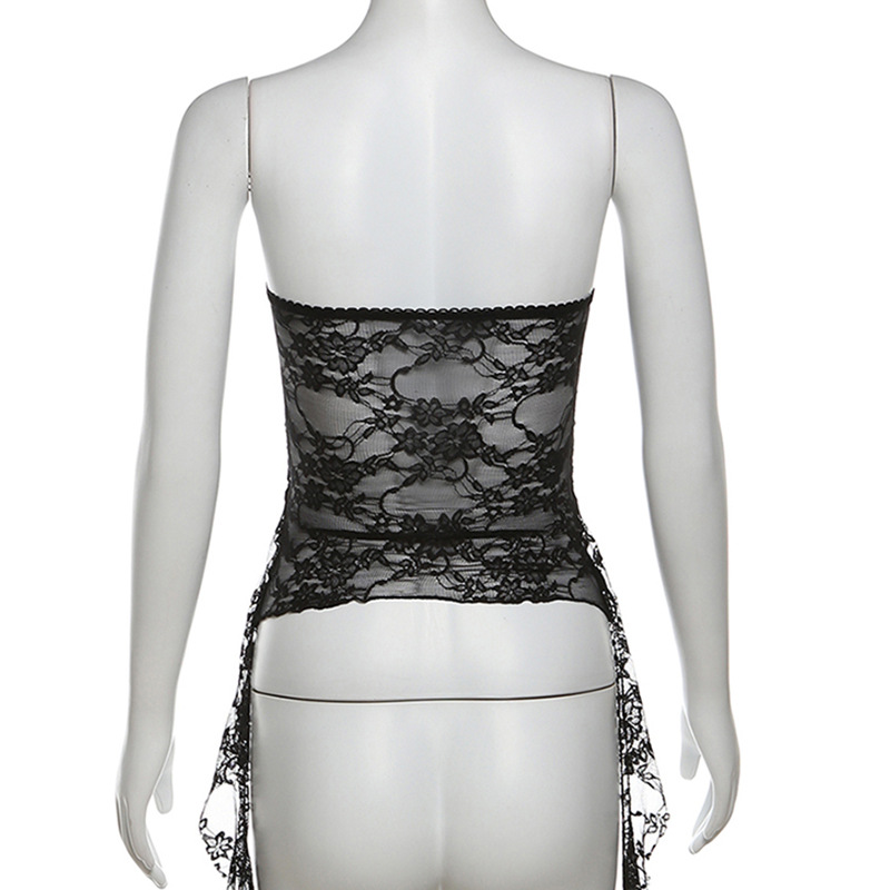 Lunivop Women Y2K Crop Lace Tube Tops Summer Ruffles Tassel Sheer Bandeau Vest Backless Shirts for Streetwear Vintage Aesthetic Clothes