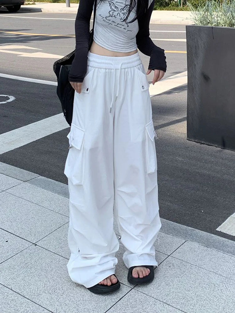 Lunivop Women Y2K White Cargo Pants Streetwear Harajuku Straight Trousers Vintage High Waist American Hip Hop Pockets Casual Pants