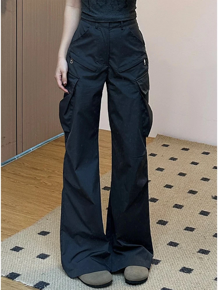 Lunivop Women's Black Cargo Flare Pants Harajuku Streetwear Baggy Pants Y2k 2000s 90s Aesthetic Emo Pants Vintage Trousers Clothes 2024