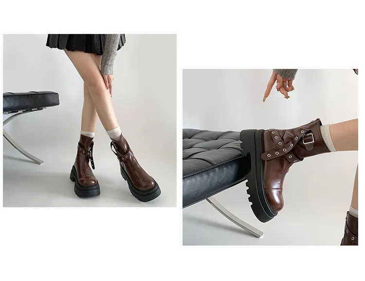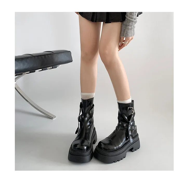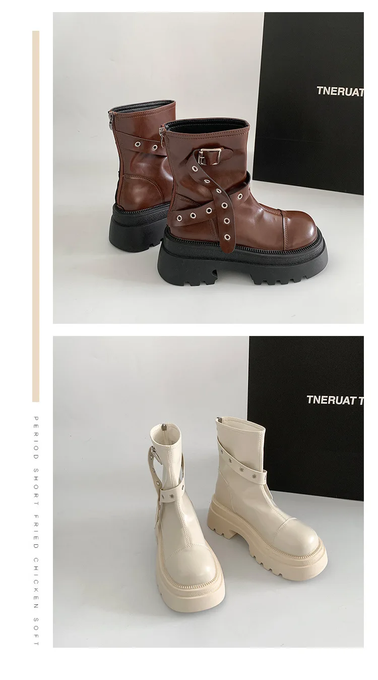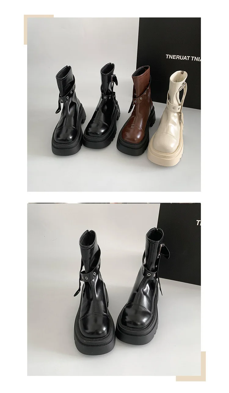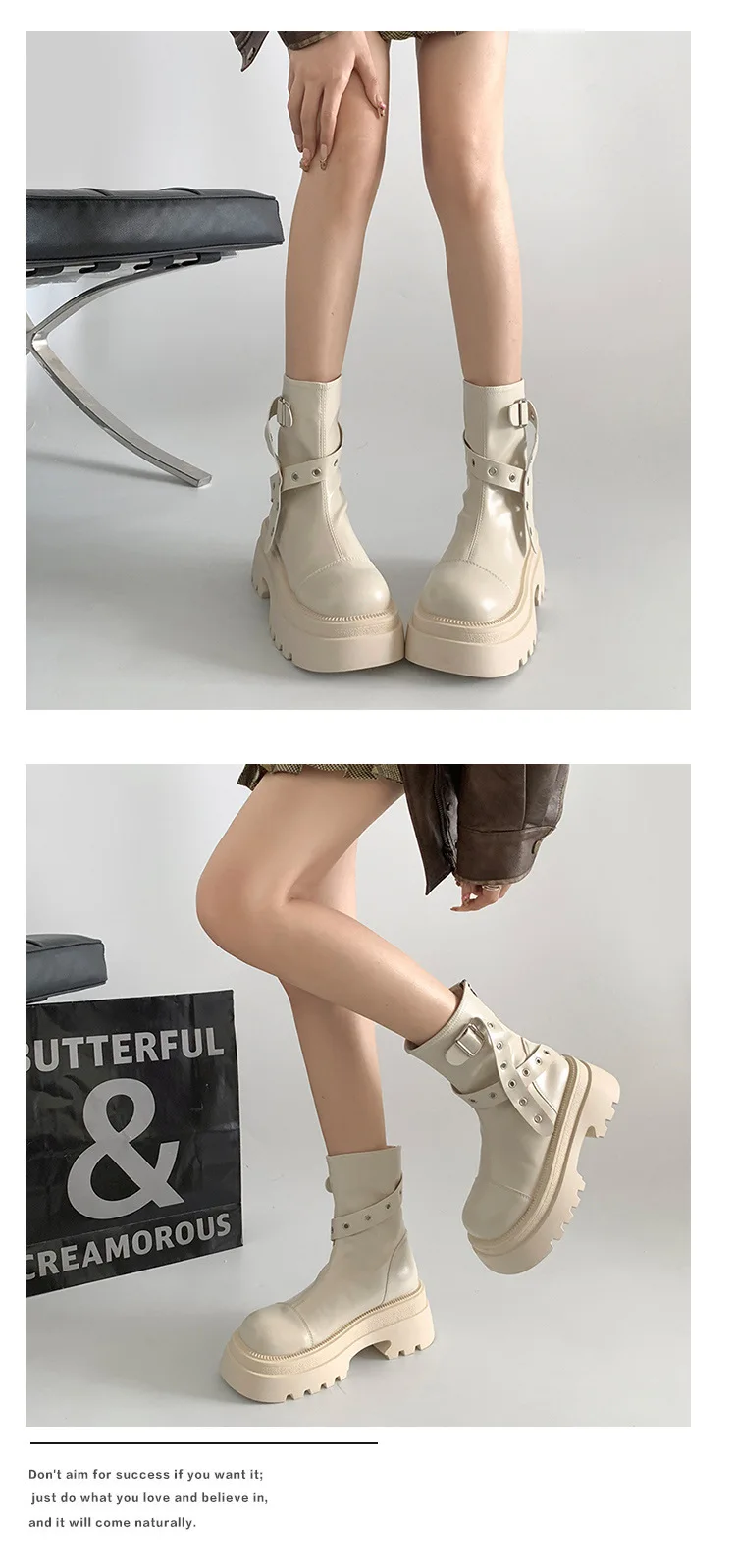 Lunivop Women's Boots Autumn Platform Wedges High Heels Short Boots New Fashion Buckle Shoes for Women Ankle Boots Botas De Mujer