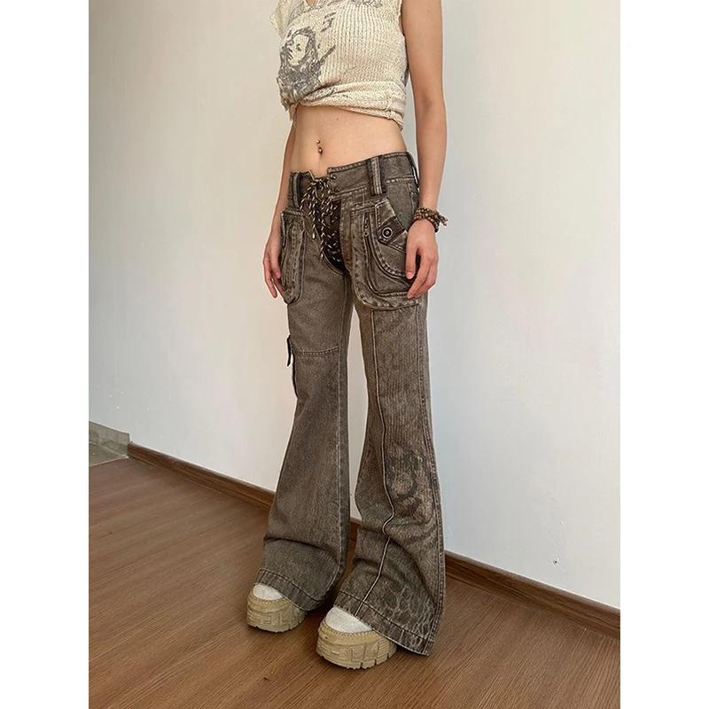 Lunivop Women's Brown Gothic Y2K Jeans Baggy Aesthetic Denim Trousers Harajuku Streetwear Jean Pants Vintage 2000s Trashy Clothes 2024