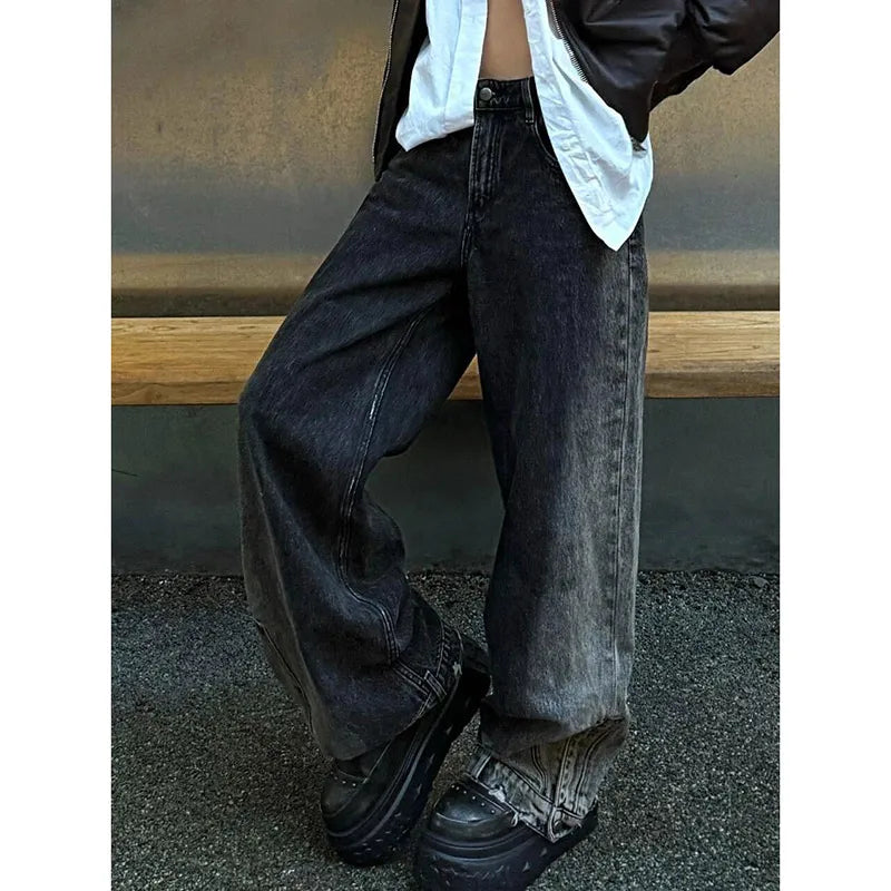 Lunivop Women's Casual Retro Wide Leg Denim Trouser Harajuku Solid High Waist Loose Jeans American Vintage 2000s Baggy Emo Pants