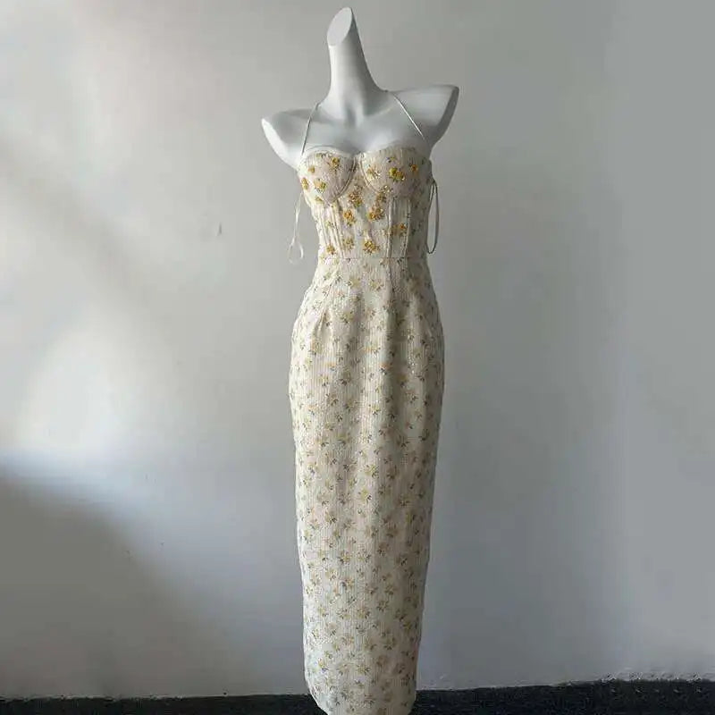 Lunivop Women's Fashion Floral Dress Halter Chest Wrapping Patchework Slim Backless Ankle-length Dresses Spring 2025 New