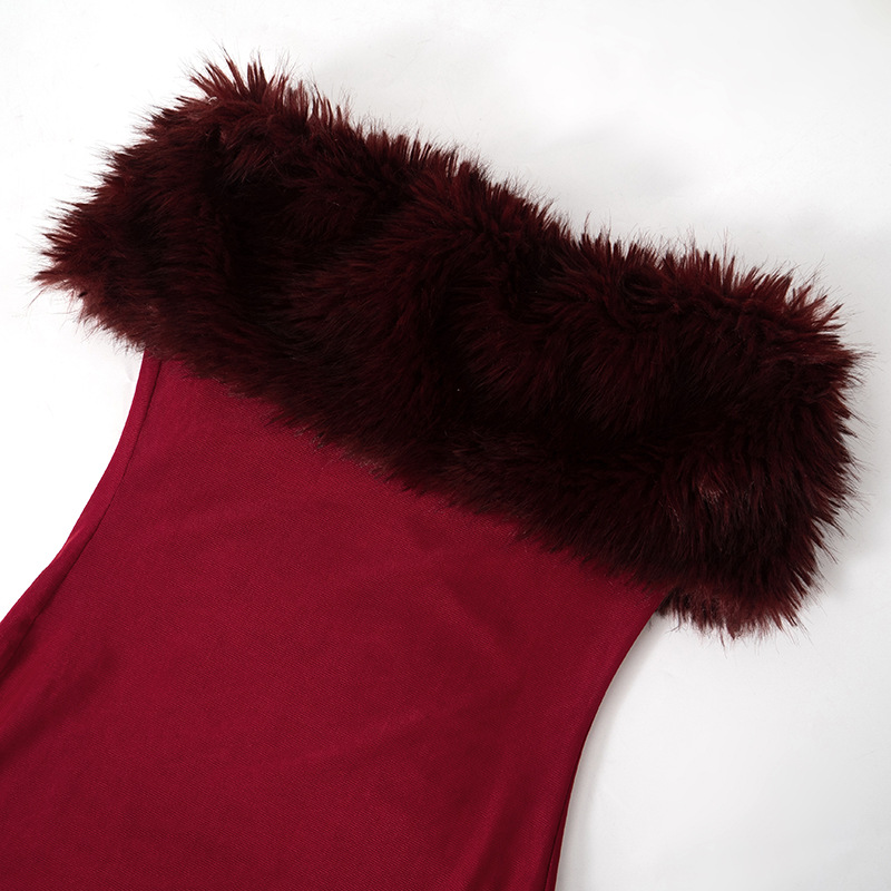 Lunivop Women's Fur Collar Mesh Splicing Tube Top Party Hot Girl Sexy Long Dress Elegant Sexy Party Dress Club Outfit