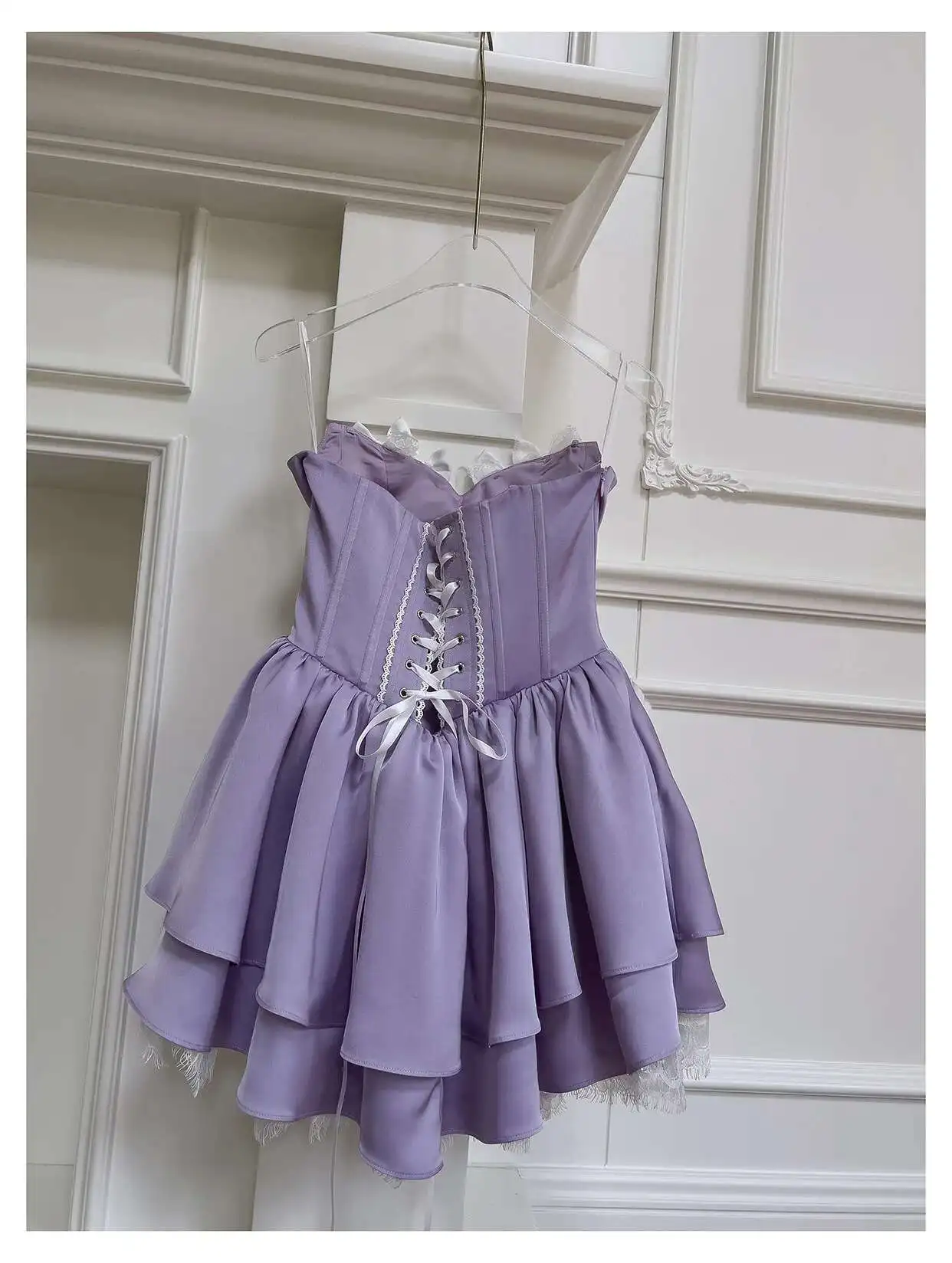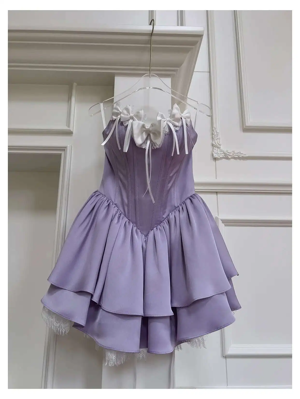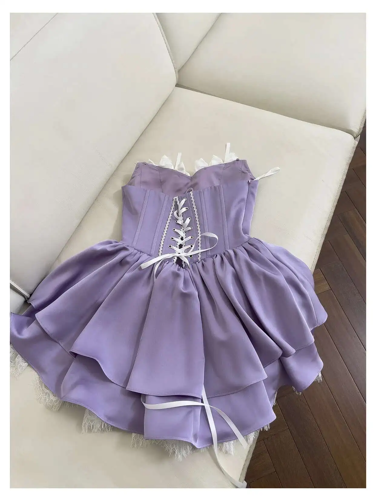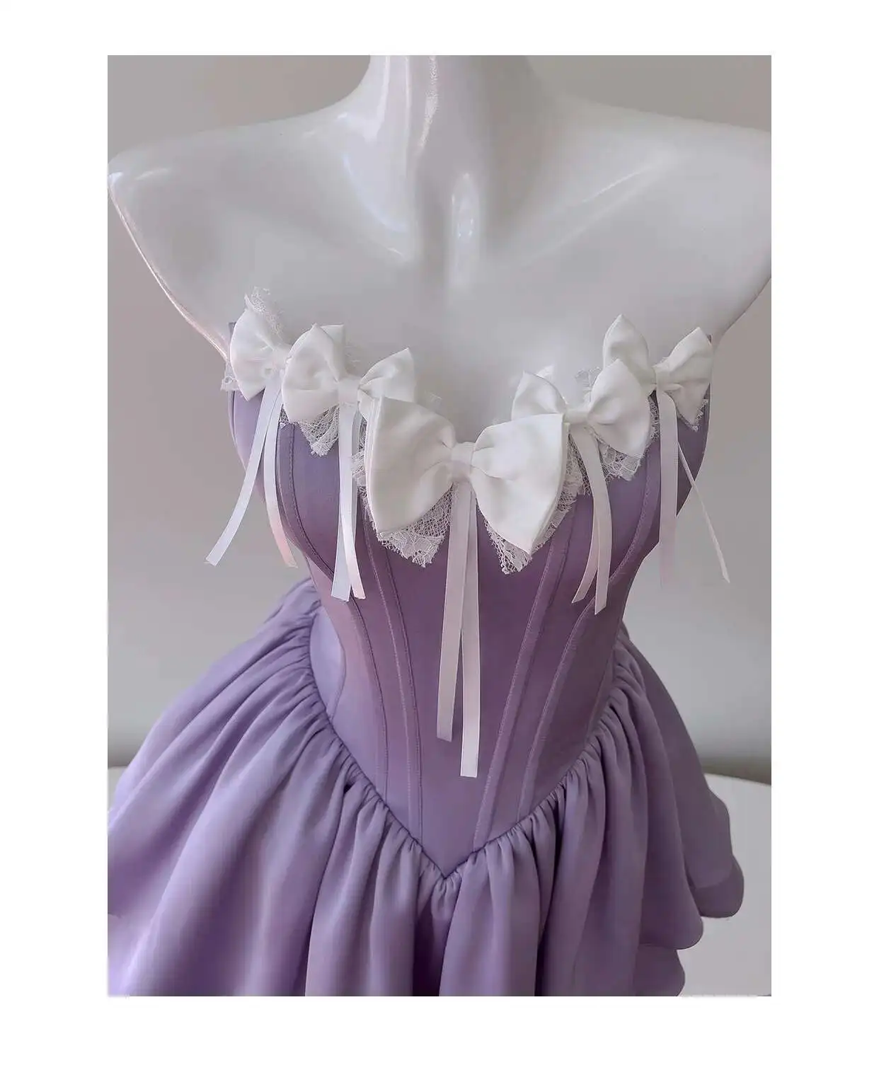 Lunivop Women's Lace Bow Lace-up Design Dresses Strapless High Waist Sleeveless Slim Elegant Dress Female Autumn 2025 New