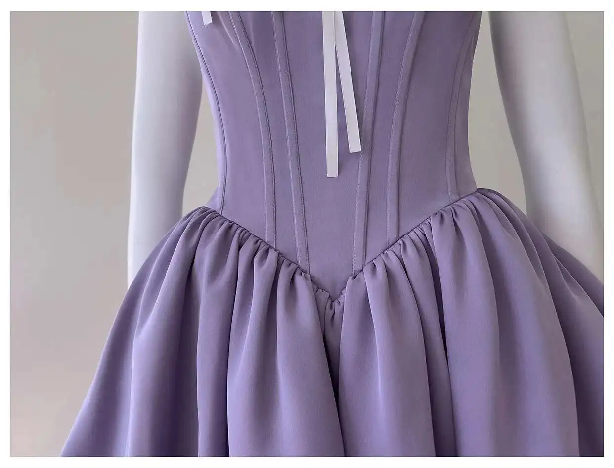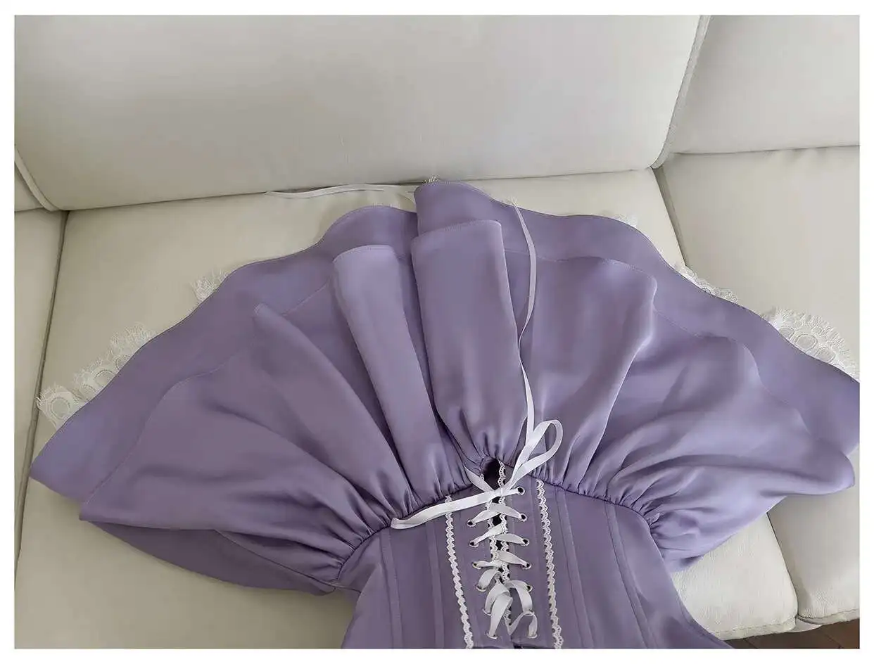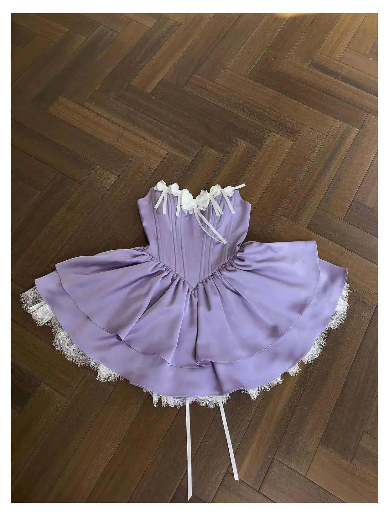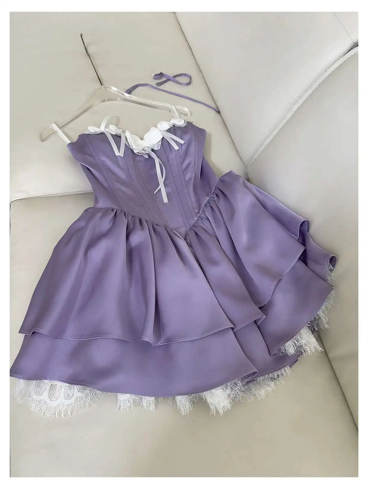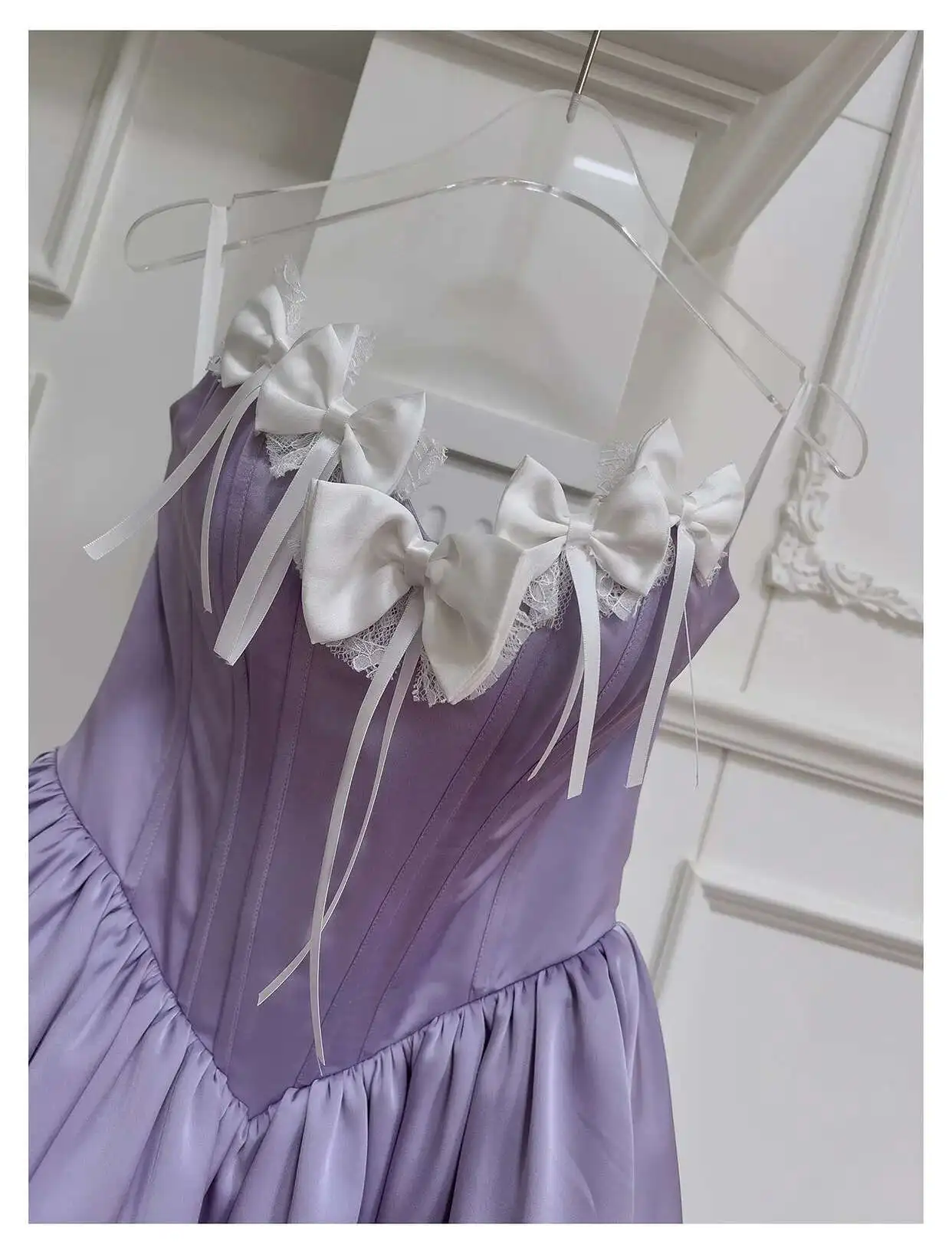 Lunivop Women's Lace Bow Lace-up Design Dresses Strapless High Waist Sleeveless Slim Elegant Dress Female Autumn 2025 New