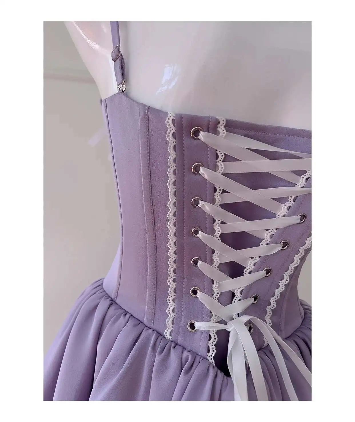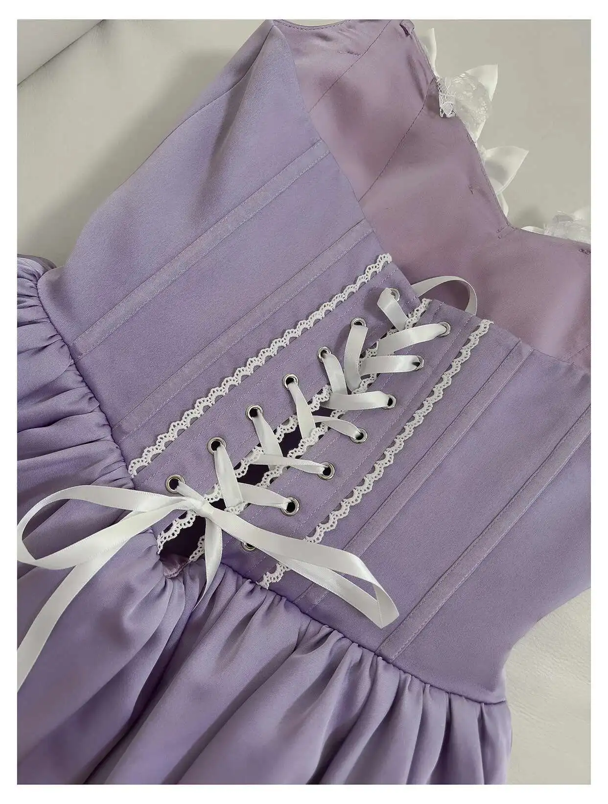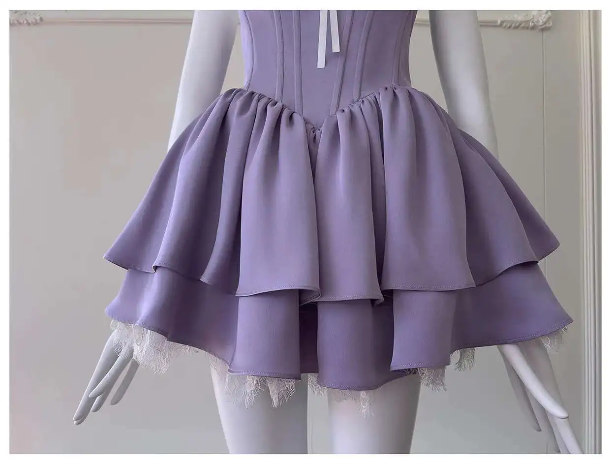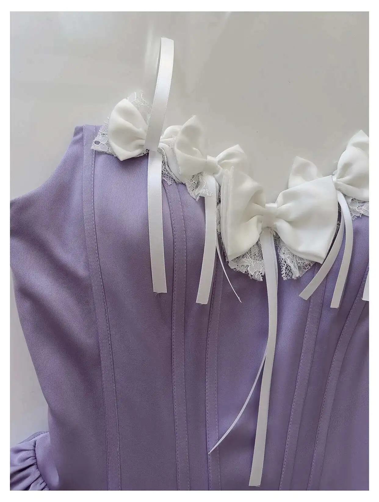 Lunivop Women's Lace Bow Lace-up Design Dresses Strapless High Waist Sleeveless Slim Elegant Dress Female Autumn 2025 New