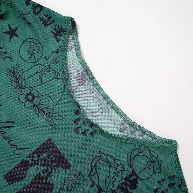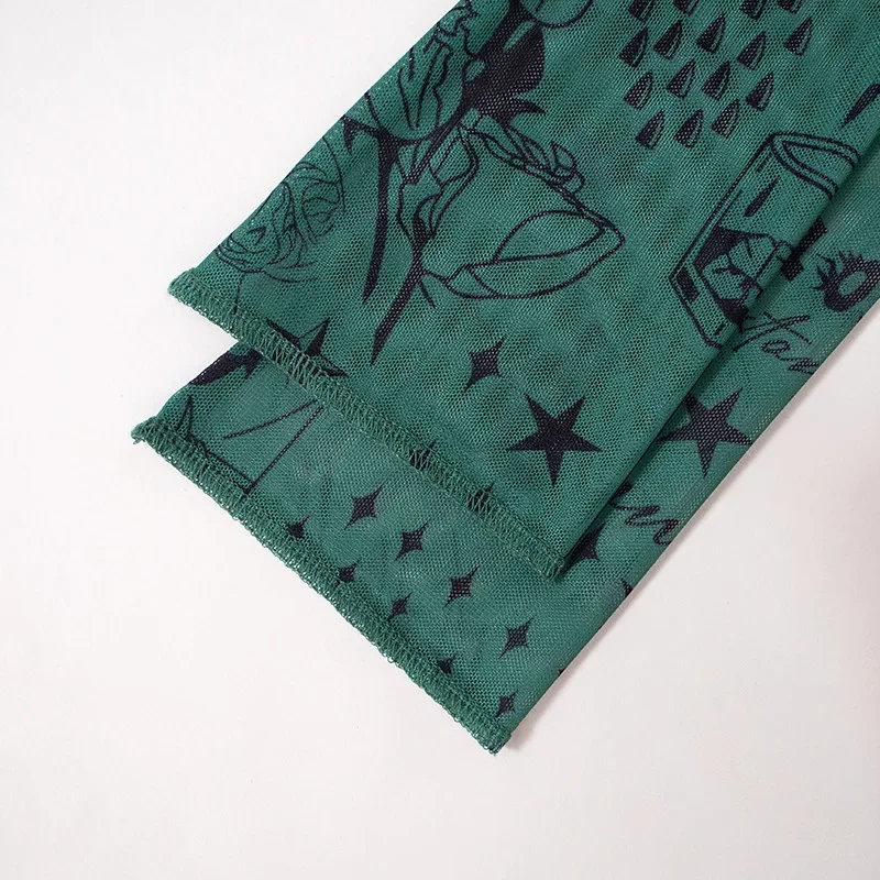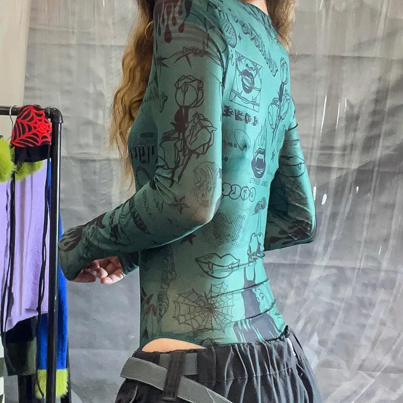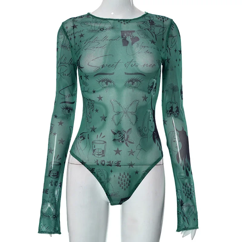Lunivop Women's long-sleeved retro-printed mesh skin-permeable onesie women's trend design summer new models