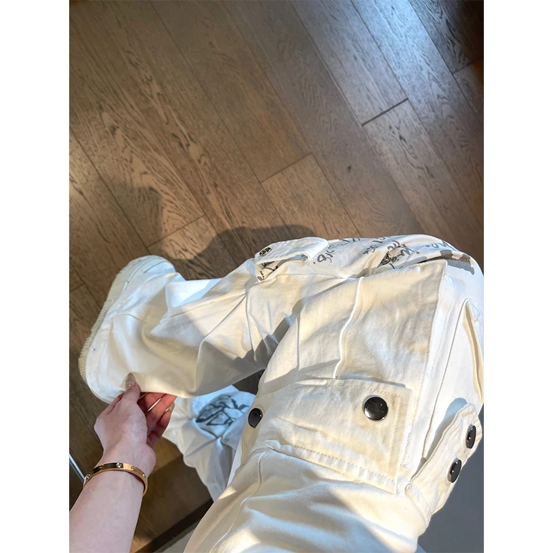 Lunivop Women's Off White Y2k Cargo Jeans Harajuku 90s Aesthetic Oversize Baggy Denim Trousers Cowboy Pants Vintage 2000s Trashy Clothes