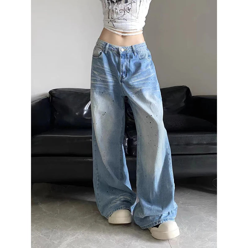 Lunivop Women's Retro Y2K Wide Leg Baggy Casual Denim Trouser Harajuku Vintage High Waist Loose Jeans 2024 Autumn Fashion Blue Pants