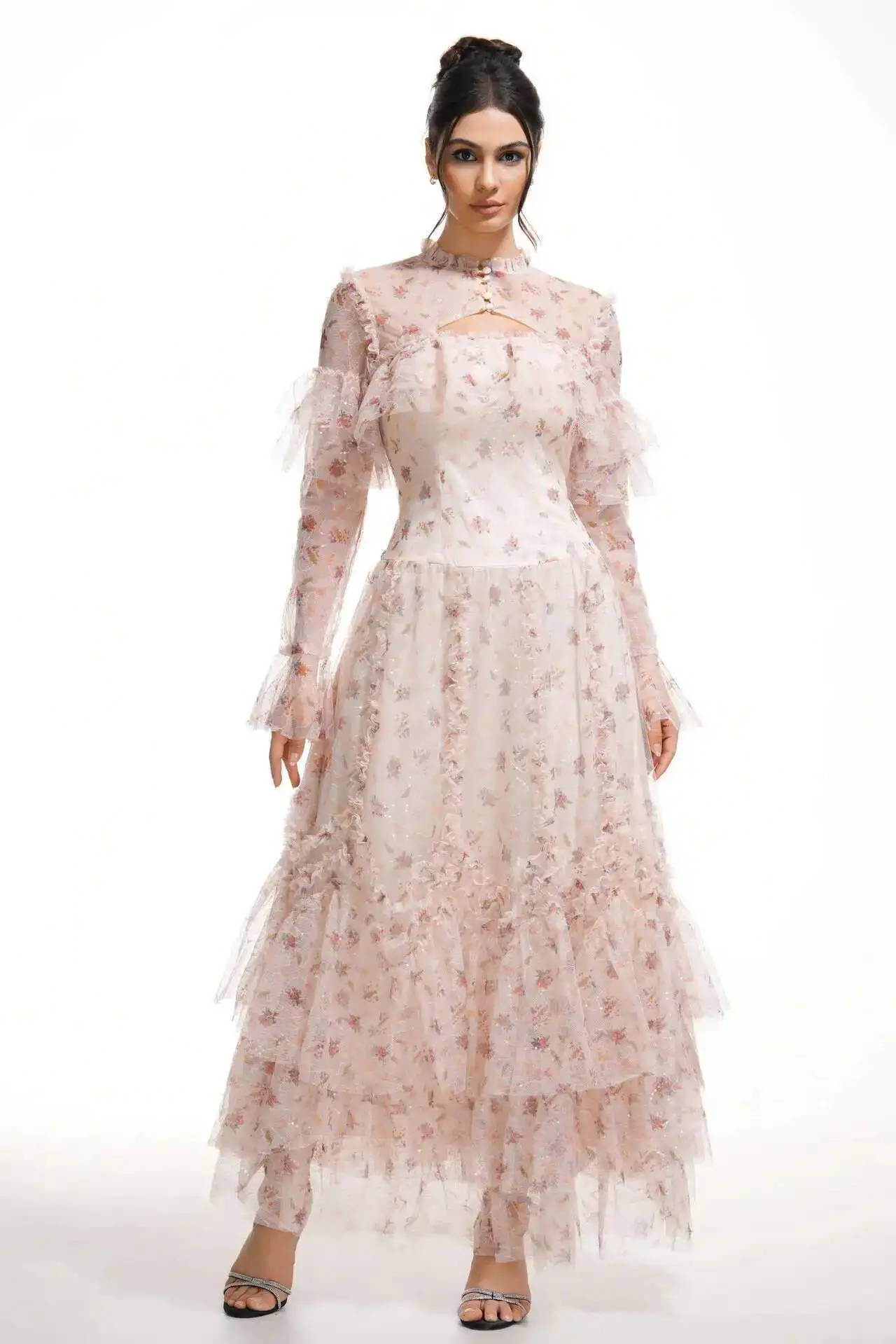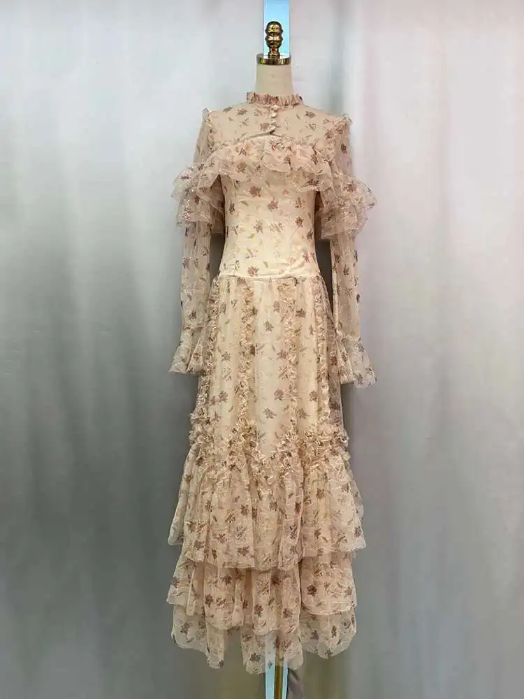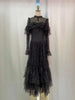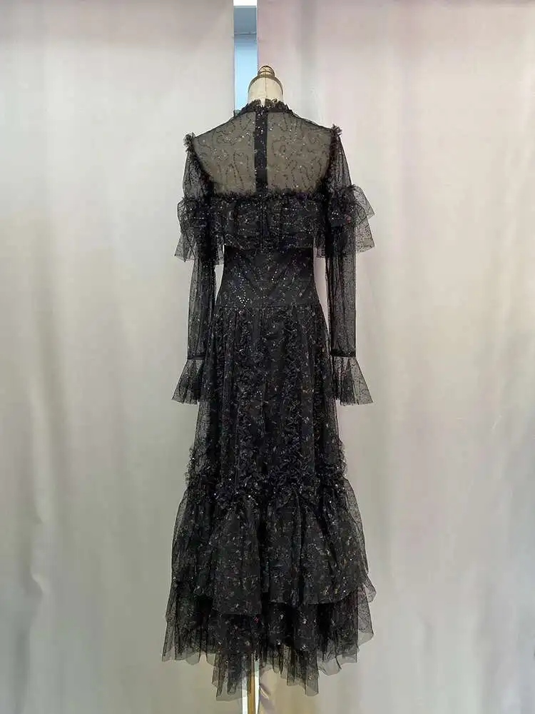 Lunivop Women's Sequin Fake 2 Pcs Ruffled Dresses Round Neck High Waist Long Sleeve Elegant Dress Female Autumn 2025 New