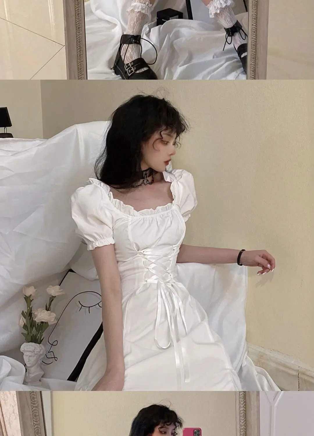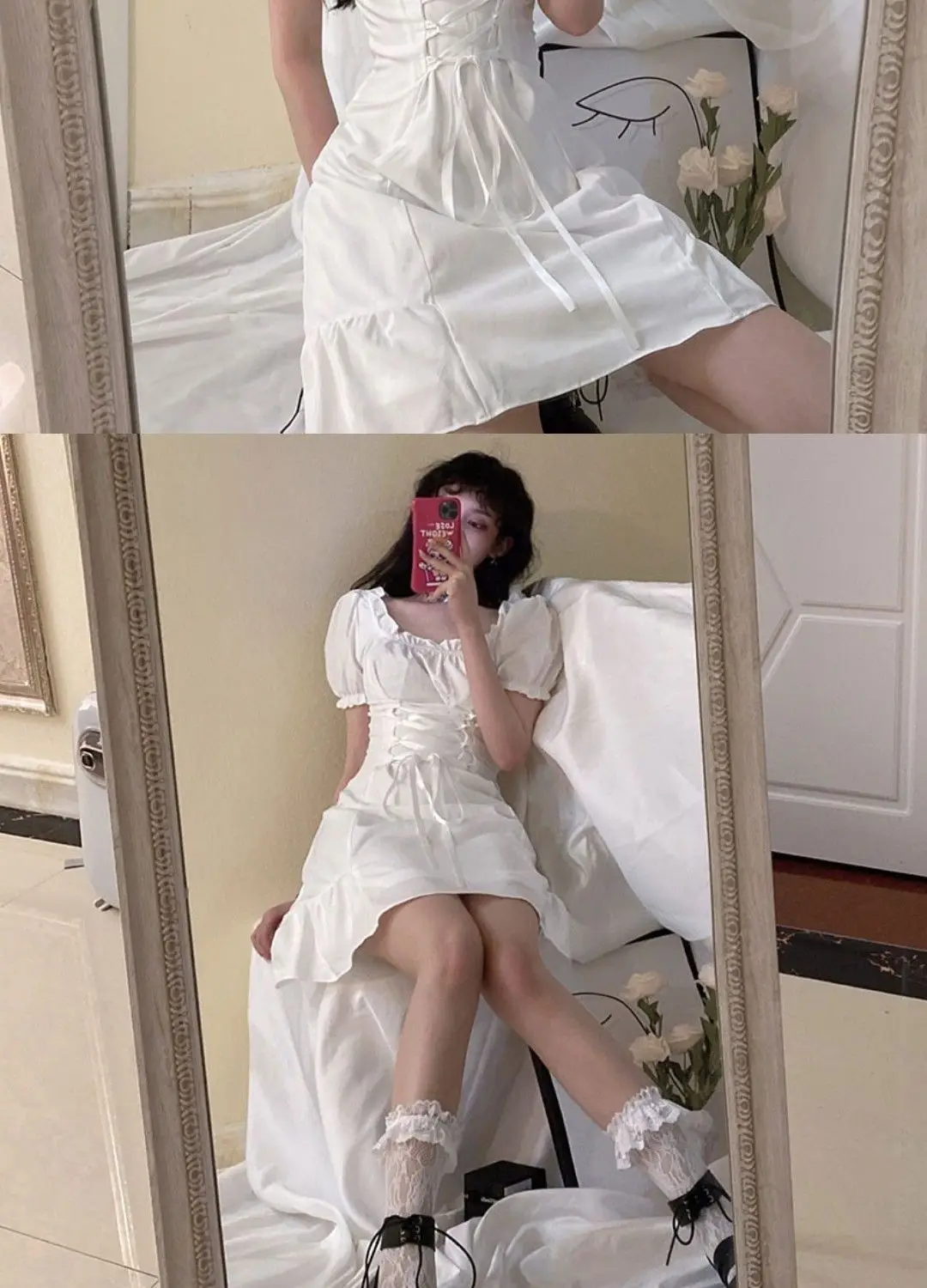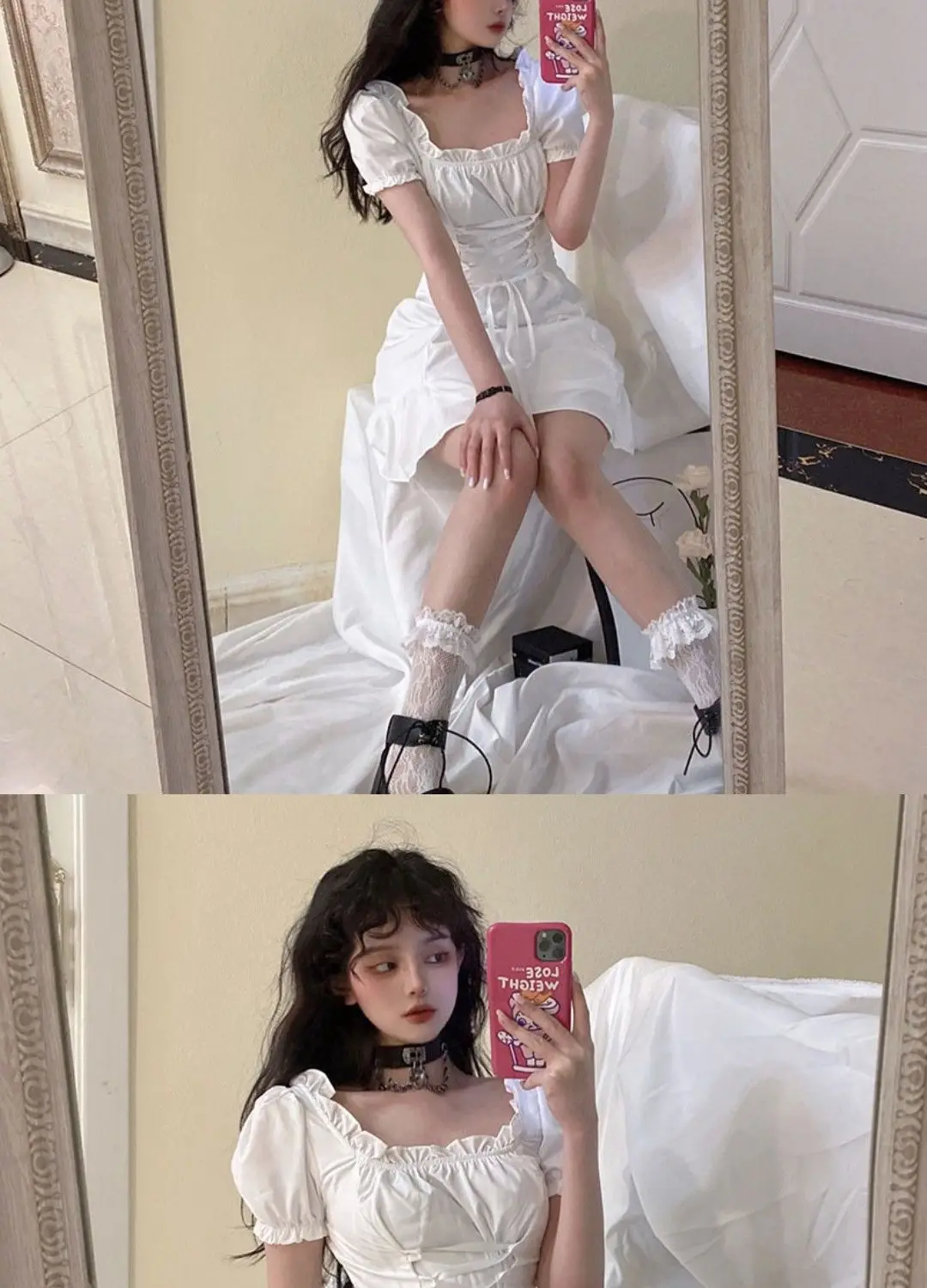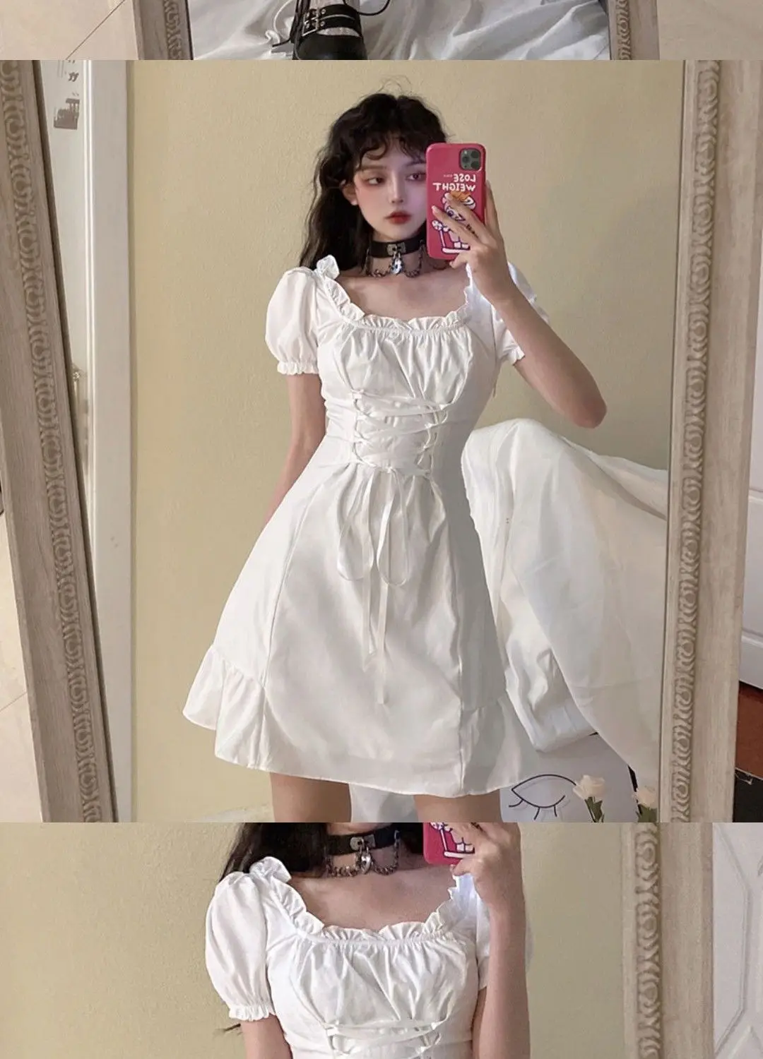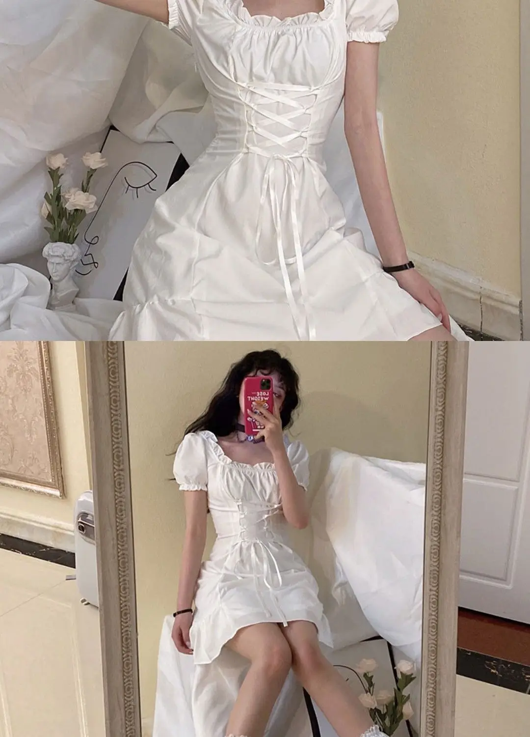 Lunivop Women's White Mini Dress Summer A Line Short Dress for Girl Kawaii Beach Party Birthday Dress Fairycore Fairy Clothes
