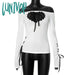 Lunivop Y2K Aesthetic Heart Hollow Out Long Sleeve Tops Fairy Cute Patchwork Bandage Slash Neck T-Shirts Gothic Slim Techwear