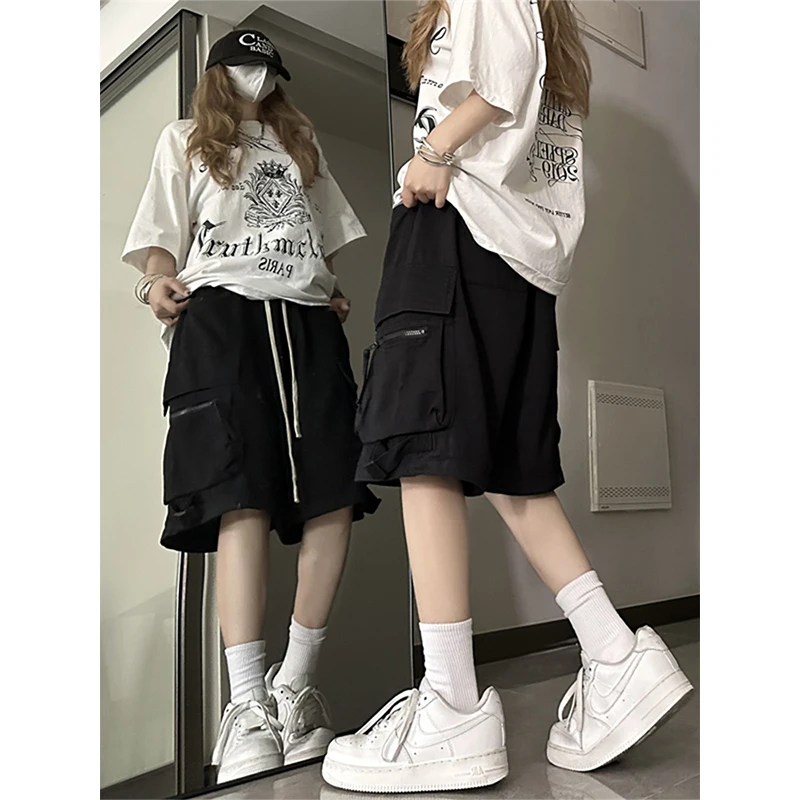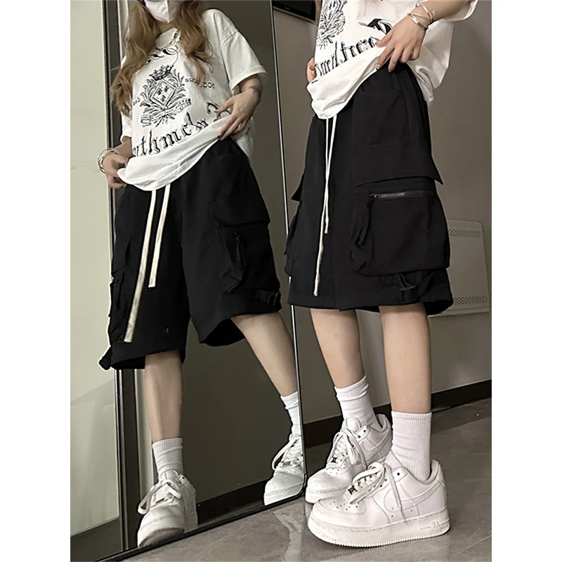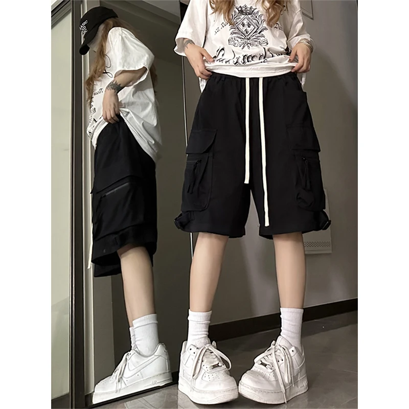 Lunivop Y2K Cargo Shorts Pants Women High Waist Drawstring Baggy Pockets Casual Knee-Length Shorts Bf Korean Streetwear Jogging Pants