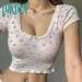 Lunivop Y2K Cute Floral T-shirts Women Summer Short Sleeve Lace Trim O-Neck Crop Tops Tee for Sweet Girls Kawaii Clothes