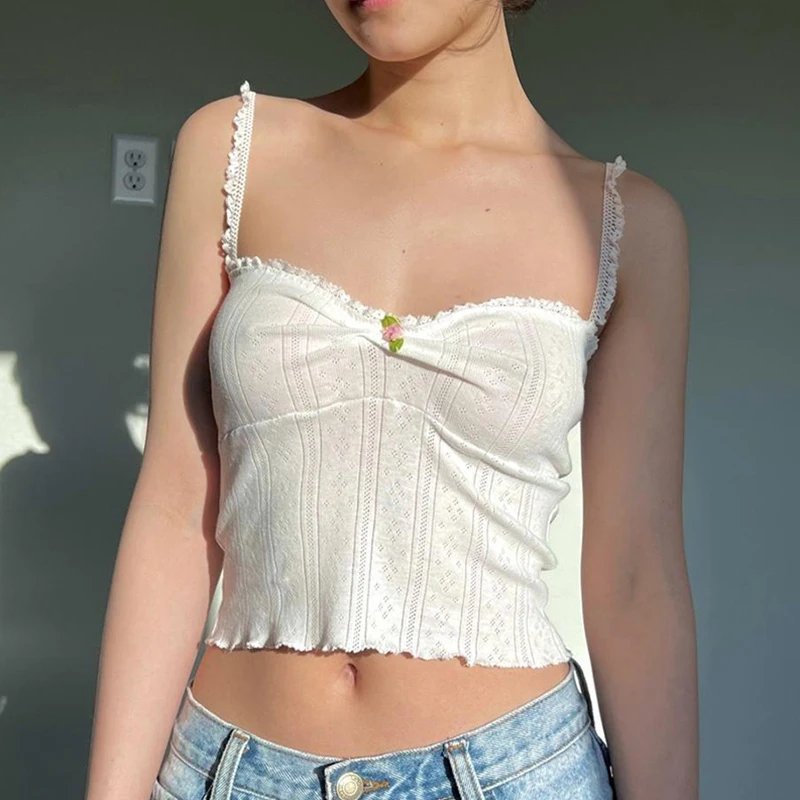 Lunivop Y2K Fairycore Retro Crop Tops Women Summer Basic Camisole Casual Lace Trim Backless Sleeveless Crop Tops for Streetwear Clubwear