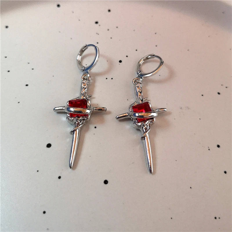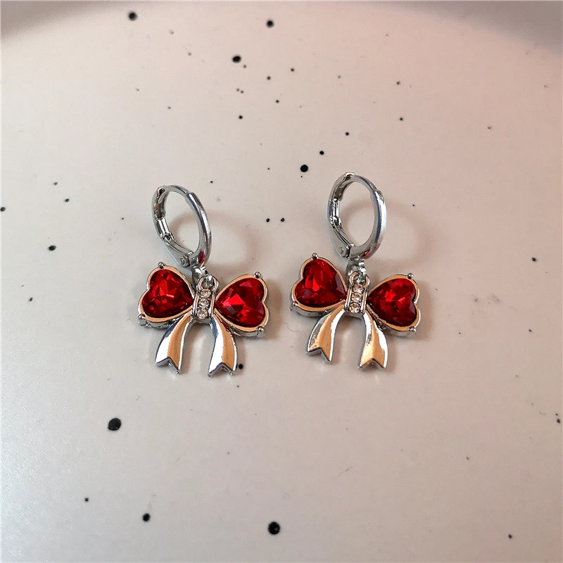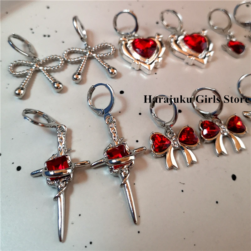 Lunivop Y2K Goth Heart Cross Star Pendant Earrings Red Zircon Love Bowknot Dangle Earring Gothic Fashion Women Jewelry Christmas Gifts