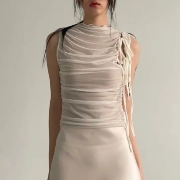 Lunivop Y2k Grunge Tops Women Hollow Out Sleeveless Mesh Tops Streetwear Vintage Retro Tank Tops Lace Up 2000s Japanese Vest