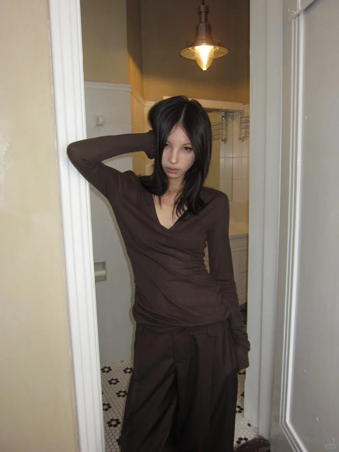 Lunivop Y2k Japanese T Shirt Women V Neck Solid Casual Tops Vintage Grunge Tops Streetwear American Retro Tshirts E-girls 2000s