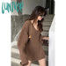 Lunivop Y2K Knitted Mini Dress Women Vintage Sexy V Neck Sweater One Piece Dresses Autumn Winter Streetwear Korean Casual Vestidos