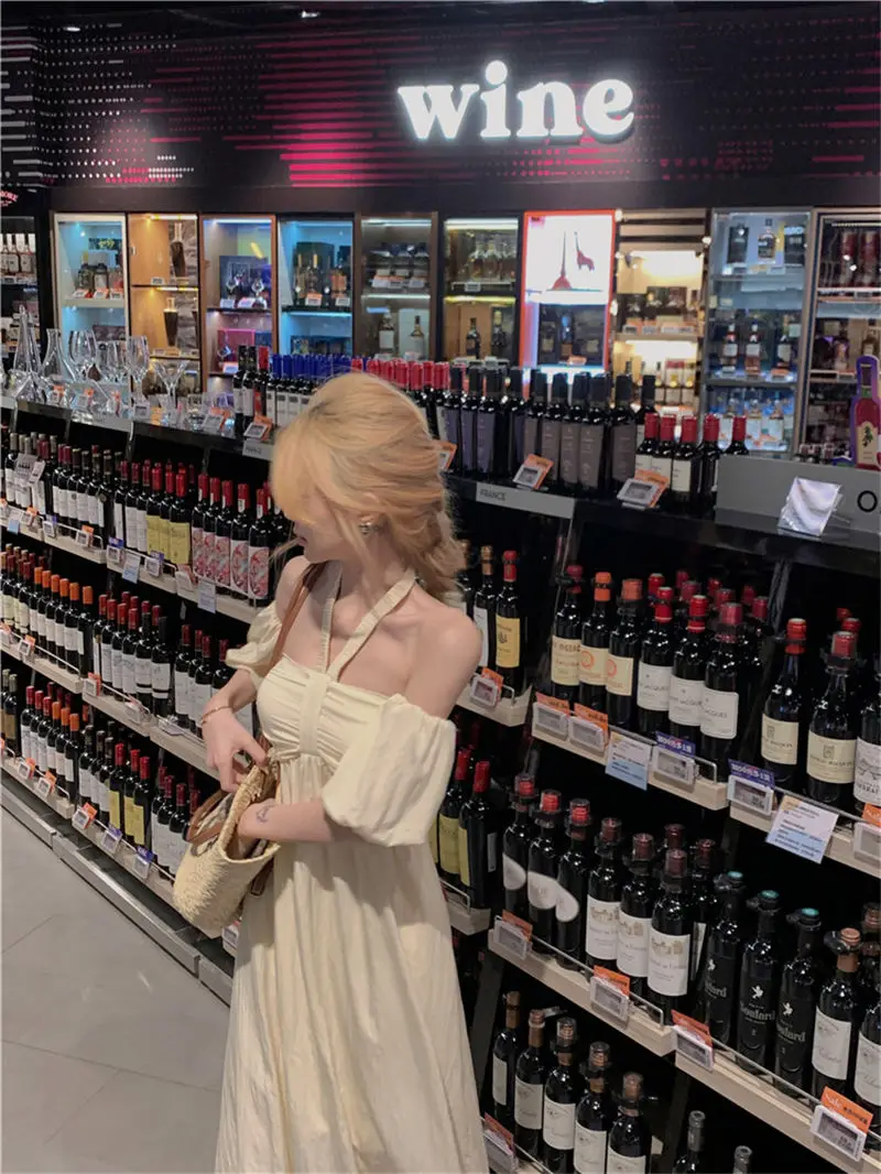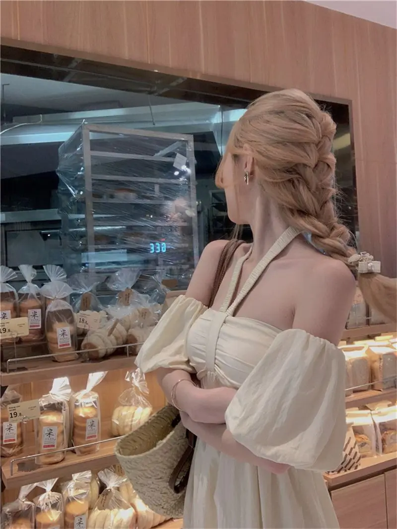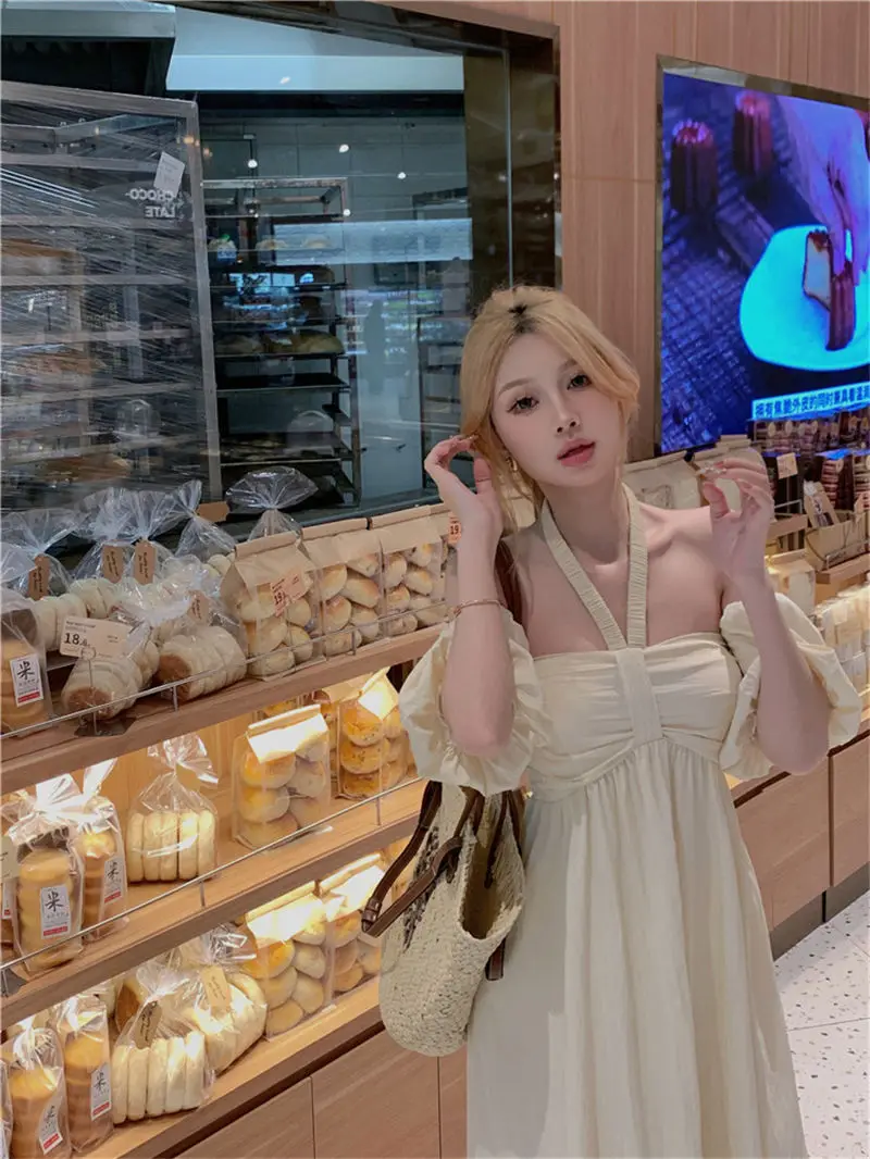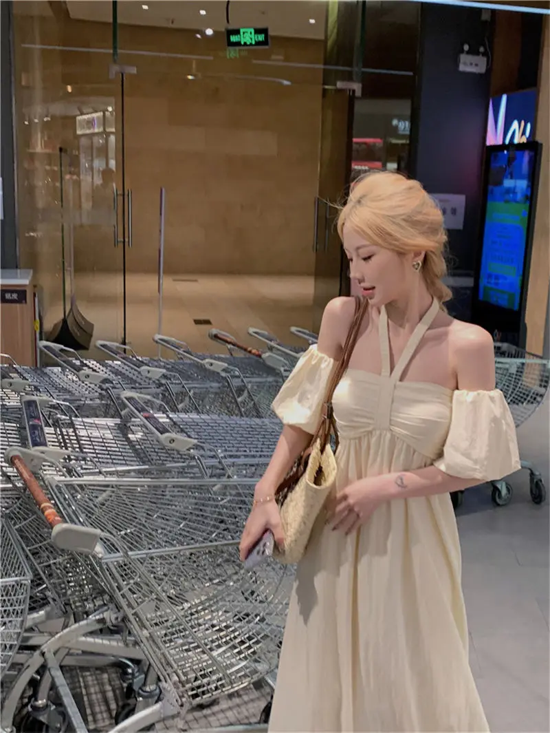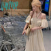 Lunivop Y2k Korean Beige Long Resort Dress Women Beach Style Off Shoulder Short Sleeve Evening Dresses Fairy Holiday Vestidos
