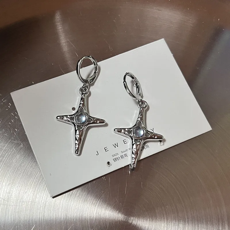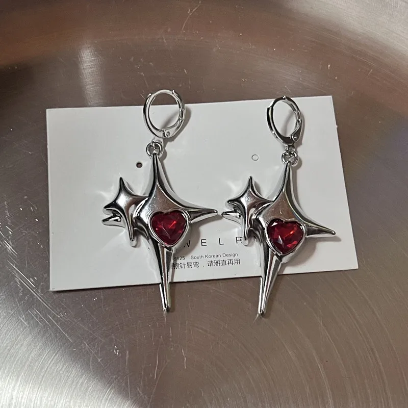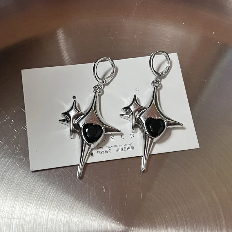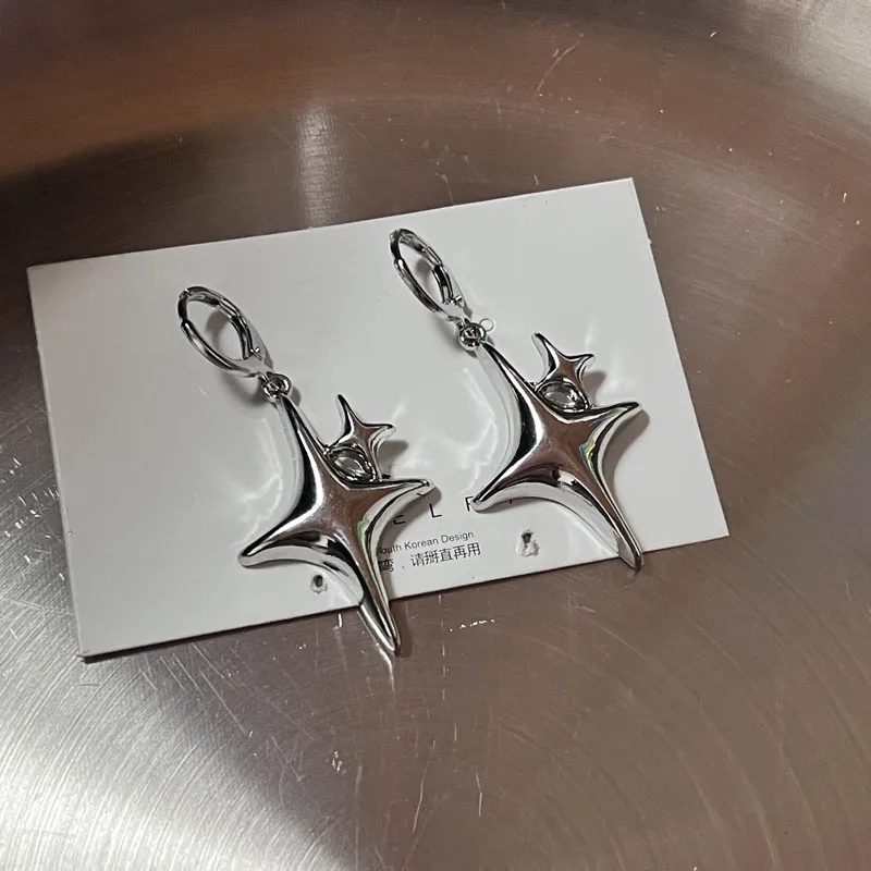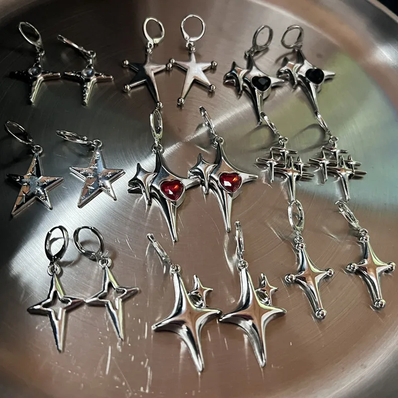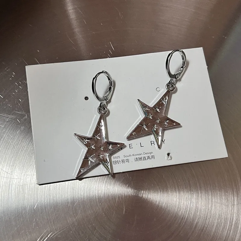 Lunivop Y2K Metal Stars Drop Pendant Earring for Women Girl Silver Color Exquisite Rhinestone Asterism Punk Jewelry Party Accessories