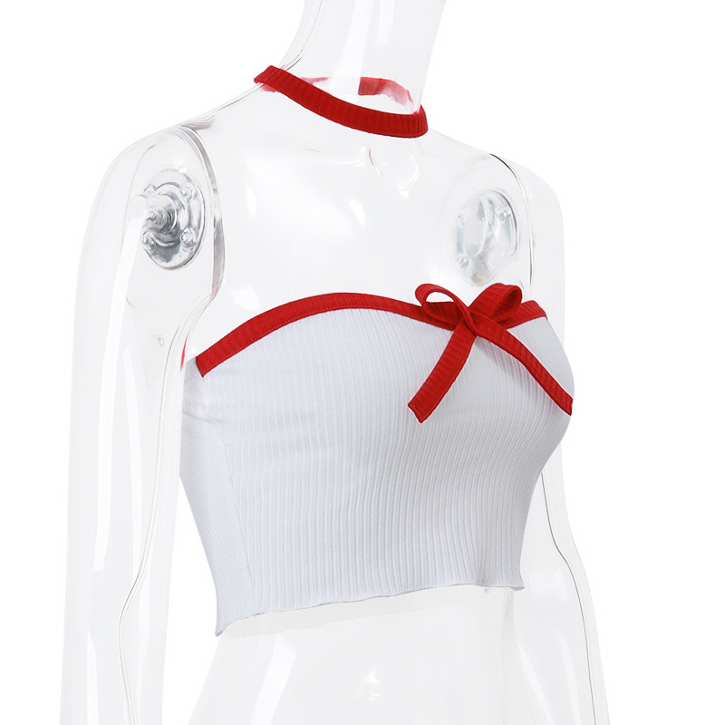 Lunivop Y2K Patchwork Color Bow Stitching Tank Top Sexy Strapless Off Off Shoulder Backless Crop Tops Hot Sweet Slim Camis