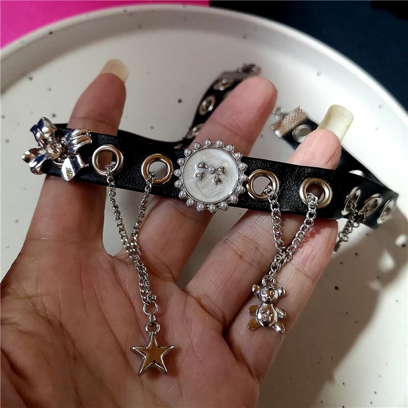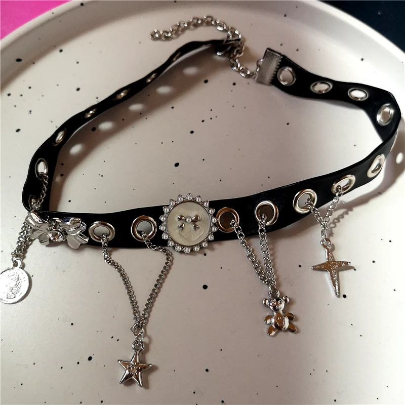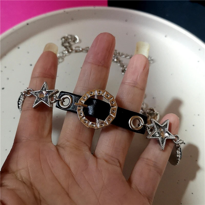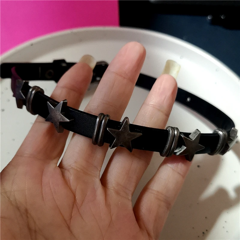 Lunivop Y2k Punk Pentagram Star Pendant Leather Choker Chain Necklace For Women Hip Hop Belt Chains Jewelry Charm Harajuku Accessories