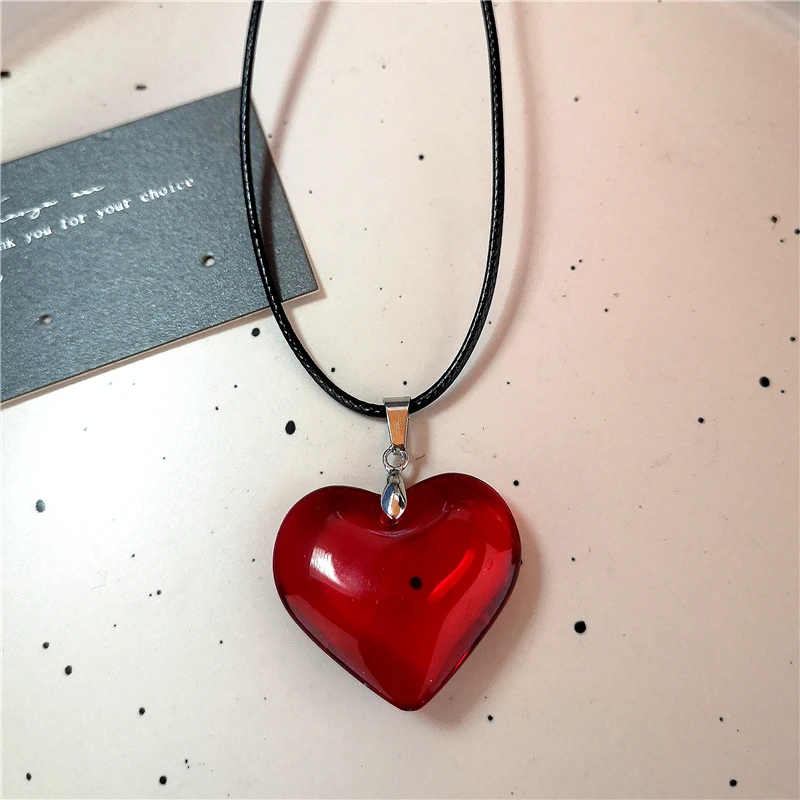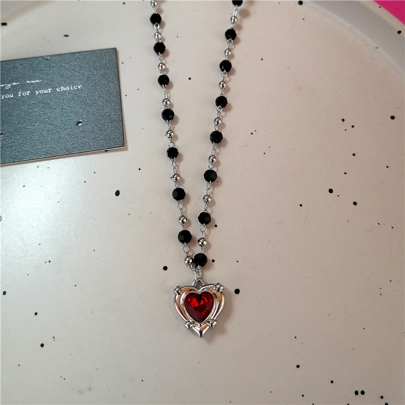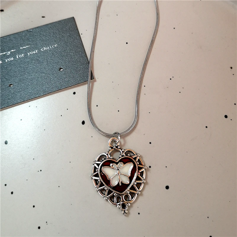 Lunivop Y2K Red Glass Crystal Heart Metal Bowknot Pendant Chain Necklace Women Gothic Harajuku Retro Jewelry Accessories Christmas Gift