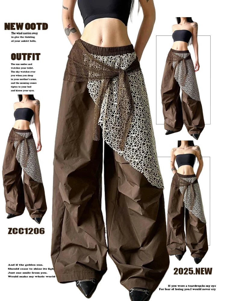 Lunivop y2k retro street pleated fake two-piece casual pants women's design sense is thin and versatile