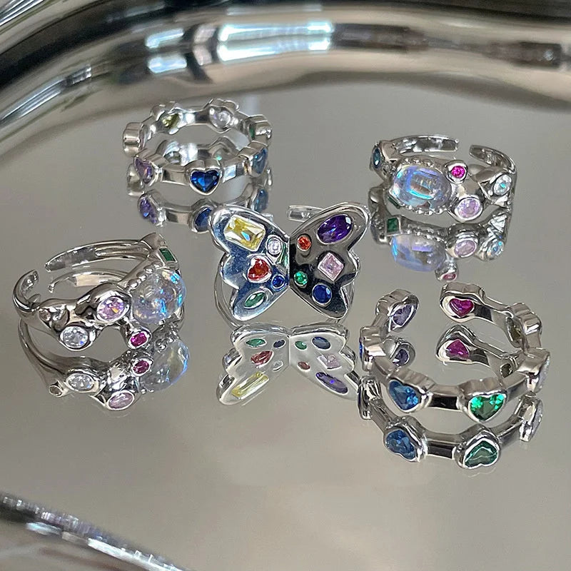 Lunivop Y2K Shine Rings Crystal Silver Color Rings For Women Cute Remetic Geometric Ring Trendy Fashion Jewelry