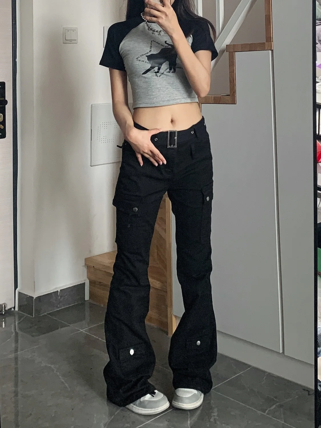 Lunivop Y2k Streetwear Cargo Jeans Women Black Gyaru Gothic Grunge Flare Denim Pants Vintage Korean Style Tights Trousers Baddies