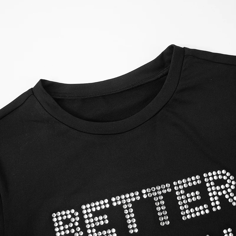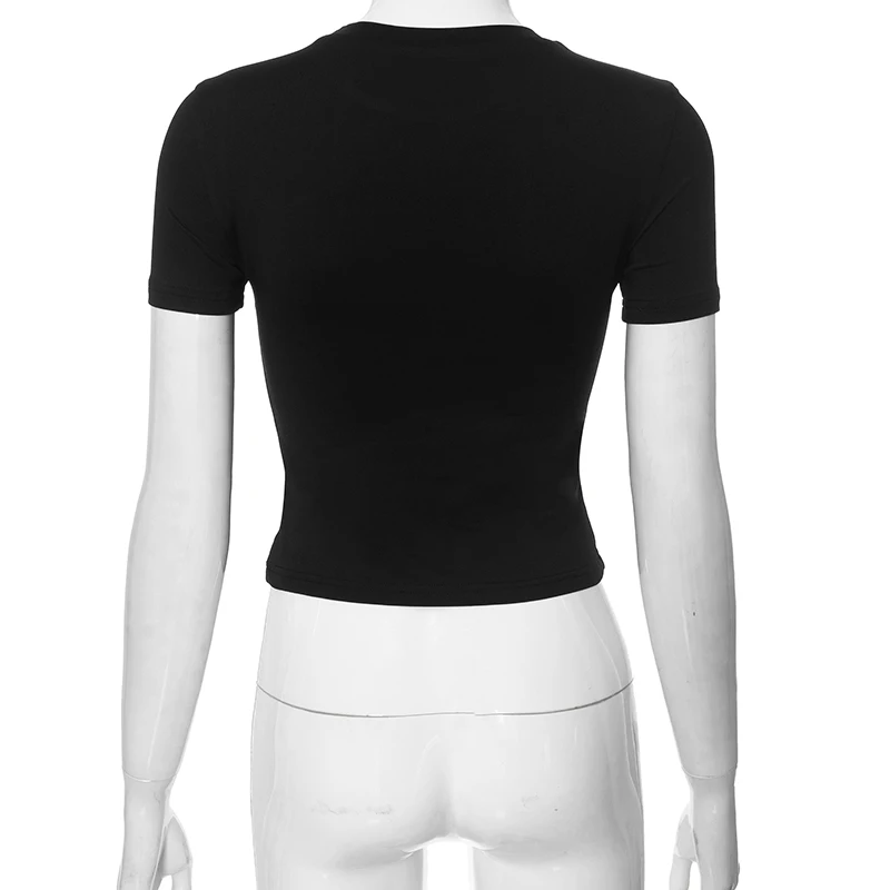 Lunivop Y2K Summer Hipster Hottie Girl O Neck Crop Tops Slim Fit Rhinestone Decoration Baby Tees New Fashion Streetwear T Shir