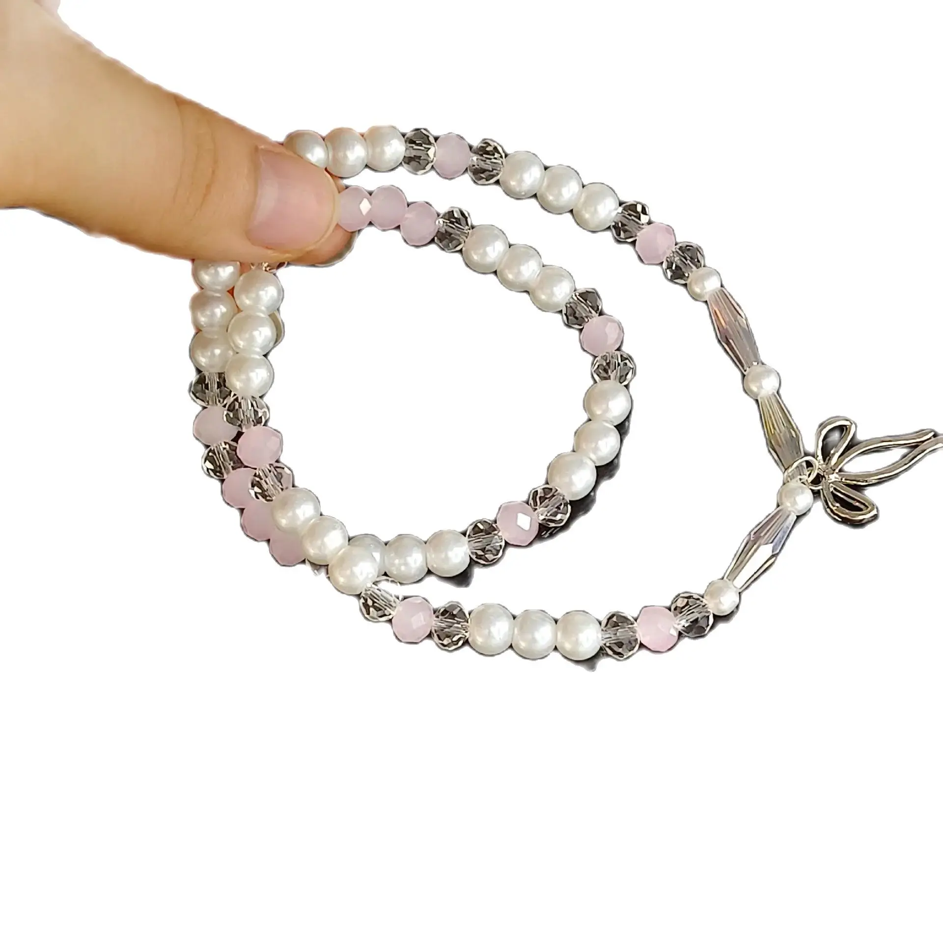 Lunivop Y2k Sweet Korean Cute Pink Beaded Imitation Pearl Bracelet For Women Girl Elegant Charm Bowknot Bow Jewelry Female Party Gifts