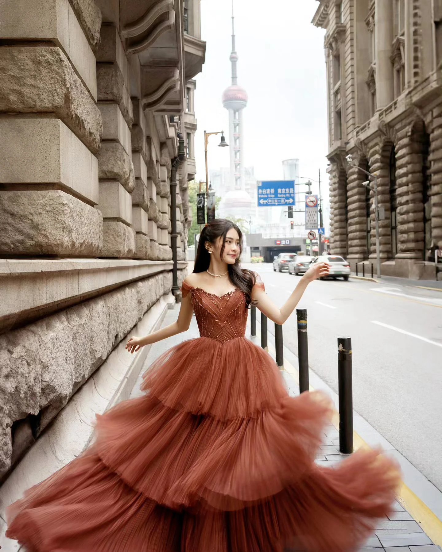 Lunivop Luxury Auburn Prom Dress Floor Length Sequins Beaded Layered Folds Evening Dresses Custom Celebrity Gown A Line Pleated Gowns