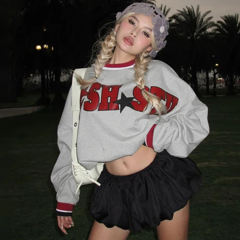 Lunivop O Neck Long Sleeve Letter Print Loose Casual Strwetwear Tops Fashion Korean Manufacturer Clothes Y2K Streetwear Autumn