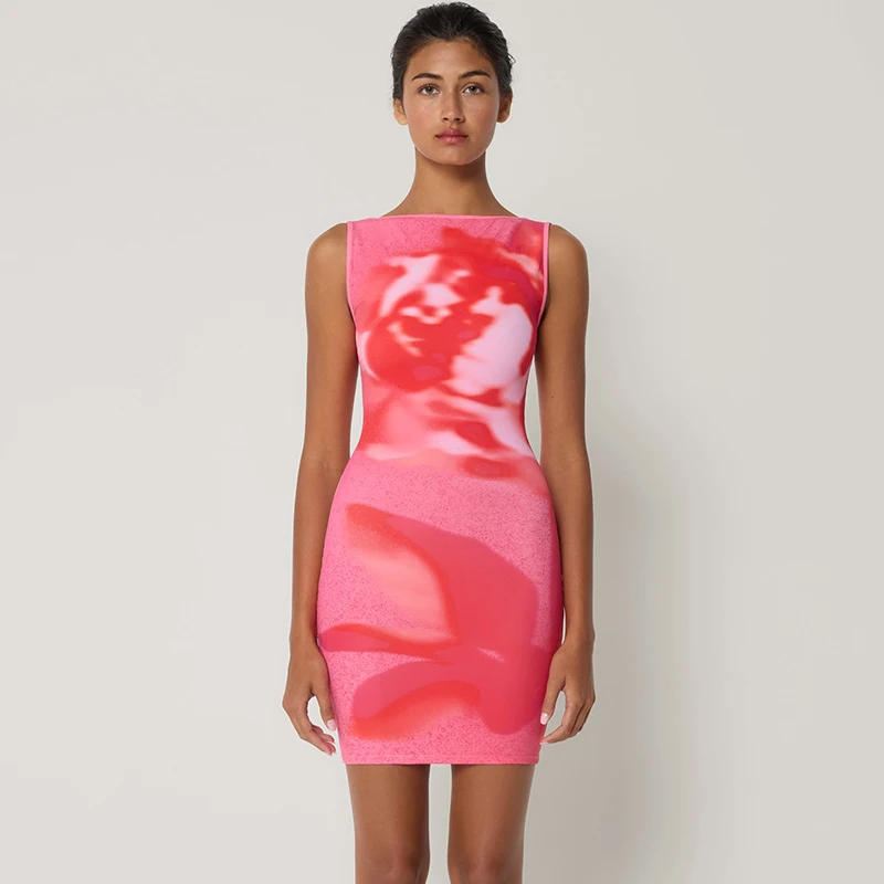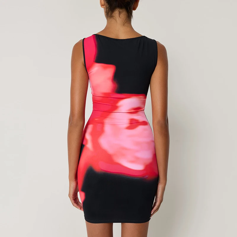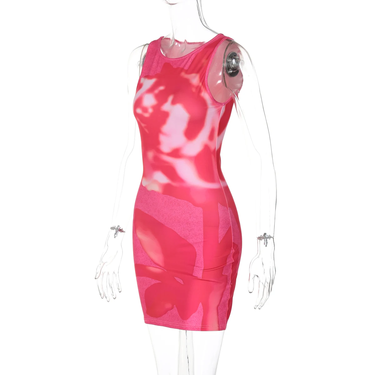 Lunivop O Neck Sleeveless Tie Dye Print Mini Short Dress For Women Y2K Party Ladeis Dress Casual Clothes Korean