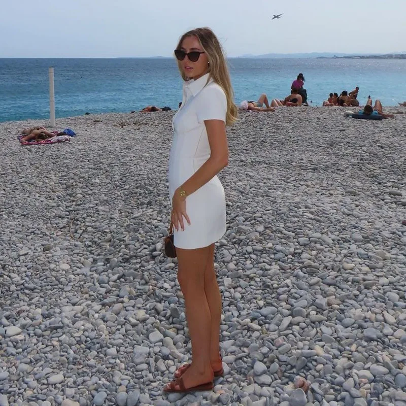 Lunivop Solid Turn Down Collar Polo Short Sleeve Mini Short Women'S Dresses Casual Clothing Streetwear Spotsuit Fashion Y2K