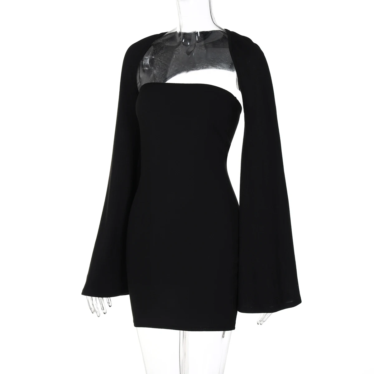 Lunivop Strapless Bodycon Mini Women'S Dresses Long Flare Sleeve Shawn Women'S Sets Elegant Evening Set Women Streetwear Clothes