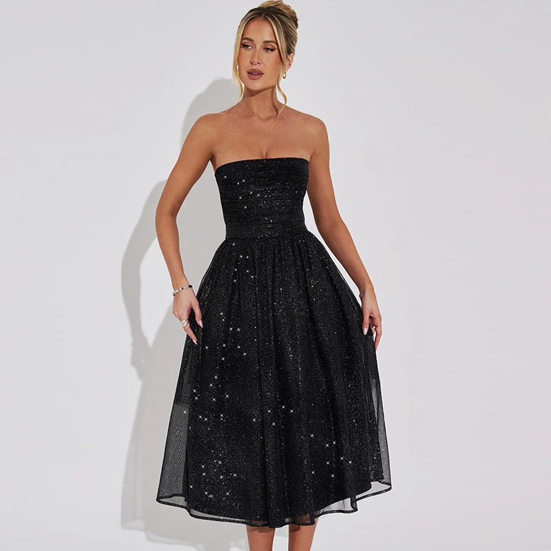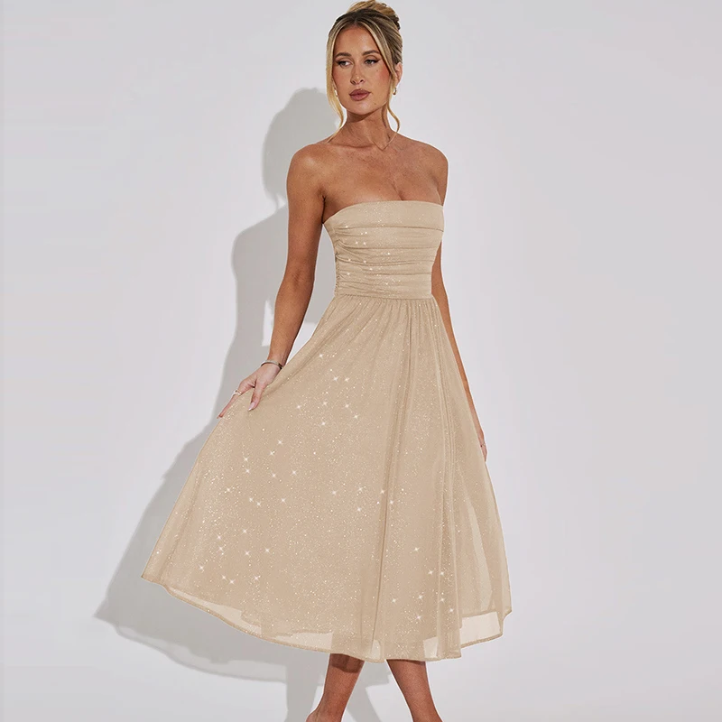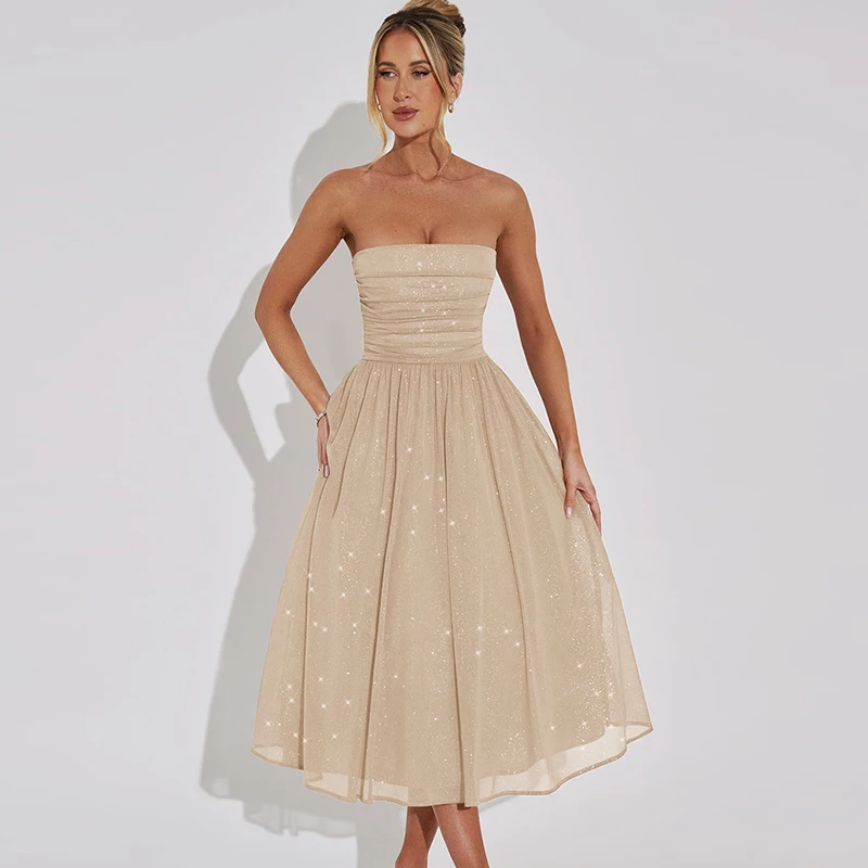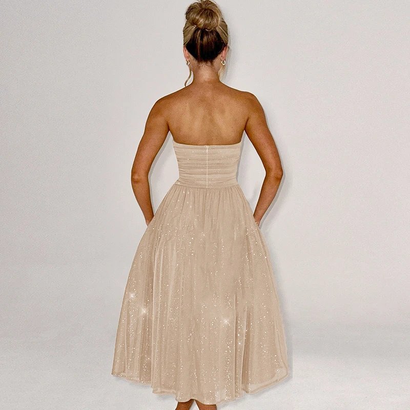 Lunivop Strapless Ruched A Line Elegant Evening Party Prom Ladies Dresses Solid Fashion Women'S Clothes 2024 Korean Outfit