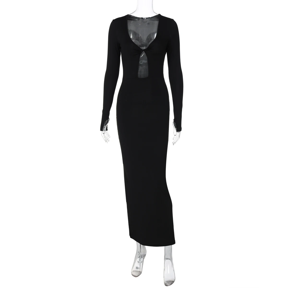 Lunivop V Neck Hollow Out Long Sleeve Elegant Evening Bodycon Women'S Dresses Party Ladies Dress Solid Manufacturter Clothes