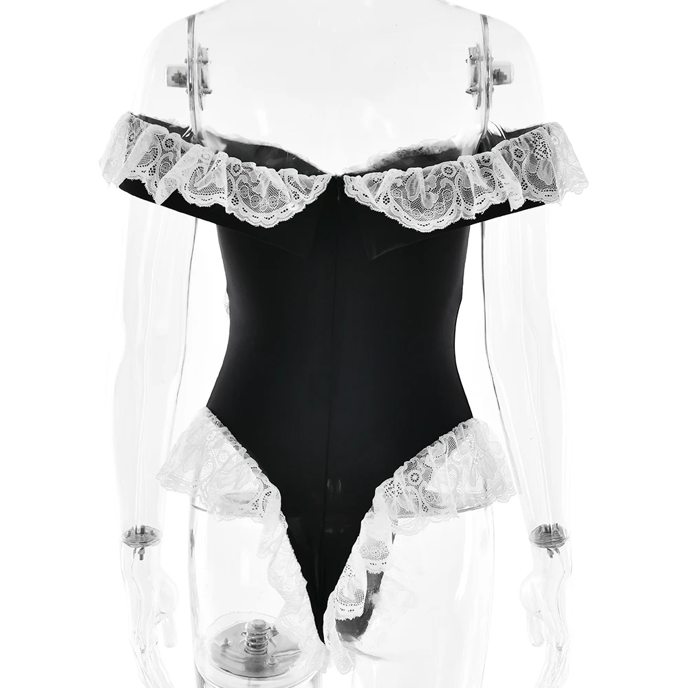 Lunivop Patchwork Sexy Off Shoulder Lace Women Bodysuit Backless High Waist Bodysuit Female Summer Slim Elegant Streetwear