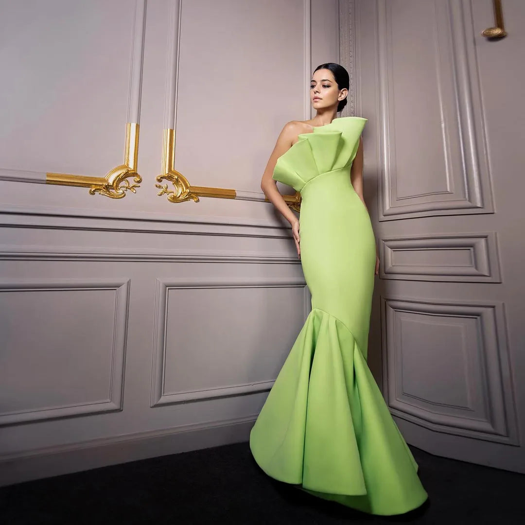 Lunivop Pretty Green Elegant Birthday Party Dresses Spandex Pleat Ruffles Formal Dress Column Asymmetrical Formal Dress Women Elegant