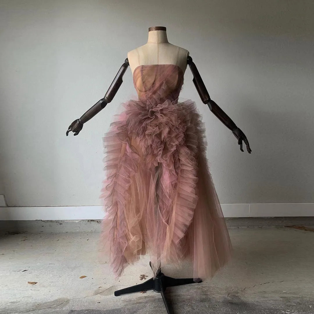Lunivop Ruffled Marchesa Pink and Purple Ombre Strapless Ankle-length Custom Made Mixed Color Lush Tulle Evening Party Dress