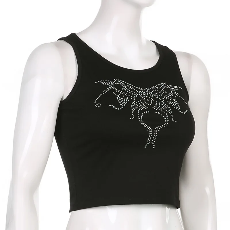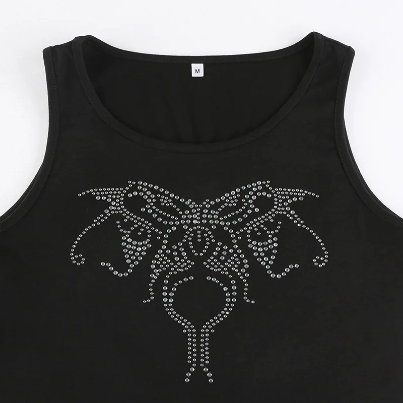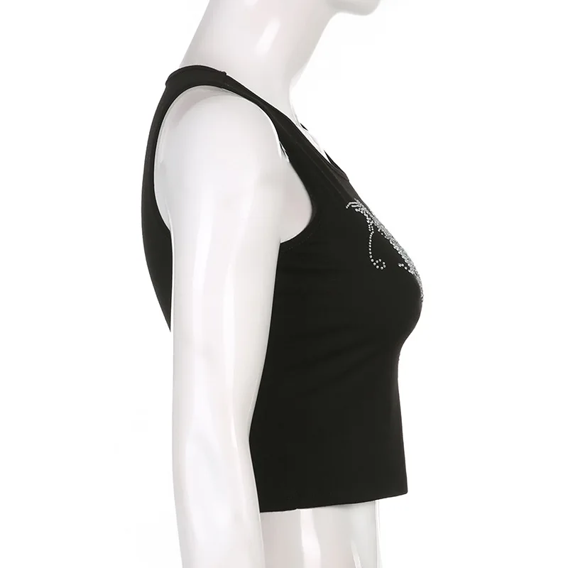 Lunivop Summer vintage women's T shirt Rhinestones Graphics Y2k Punk Sexy Black Butterfly Vest Top women O-neck short tops kawaii