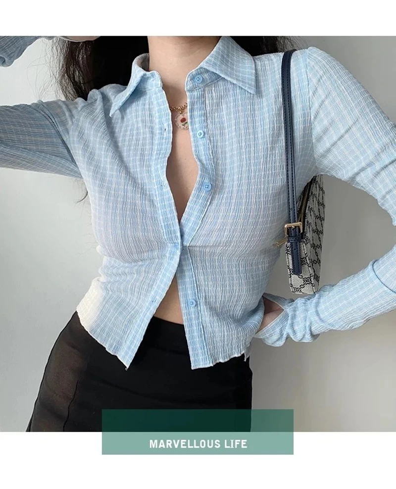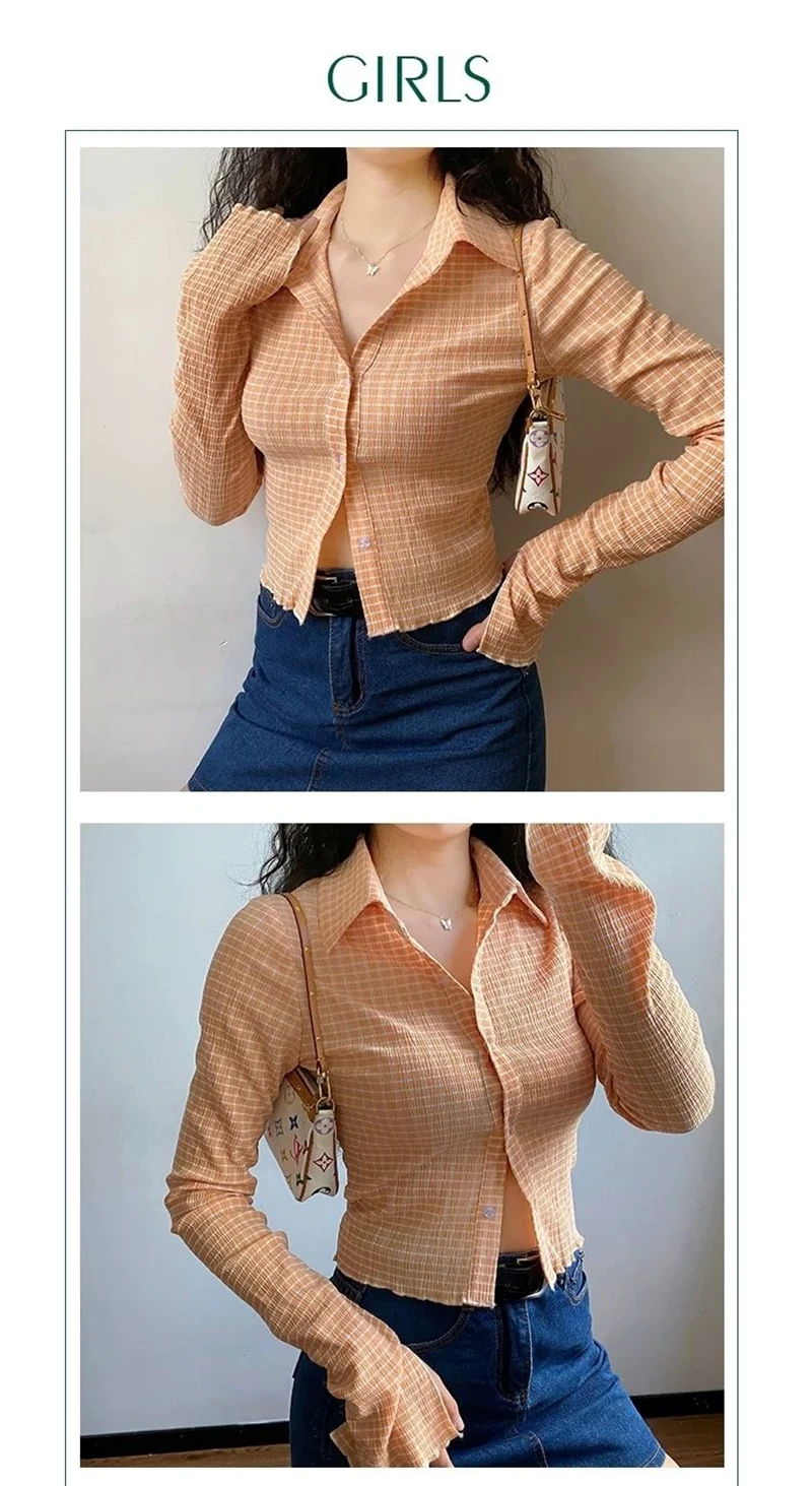 Lunivop Vintage Plaid Shirt women shirt Spring New Extra Long Sleeves Short Slim Single Breasted Green Fashion Casual Female Tops