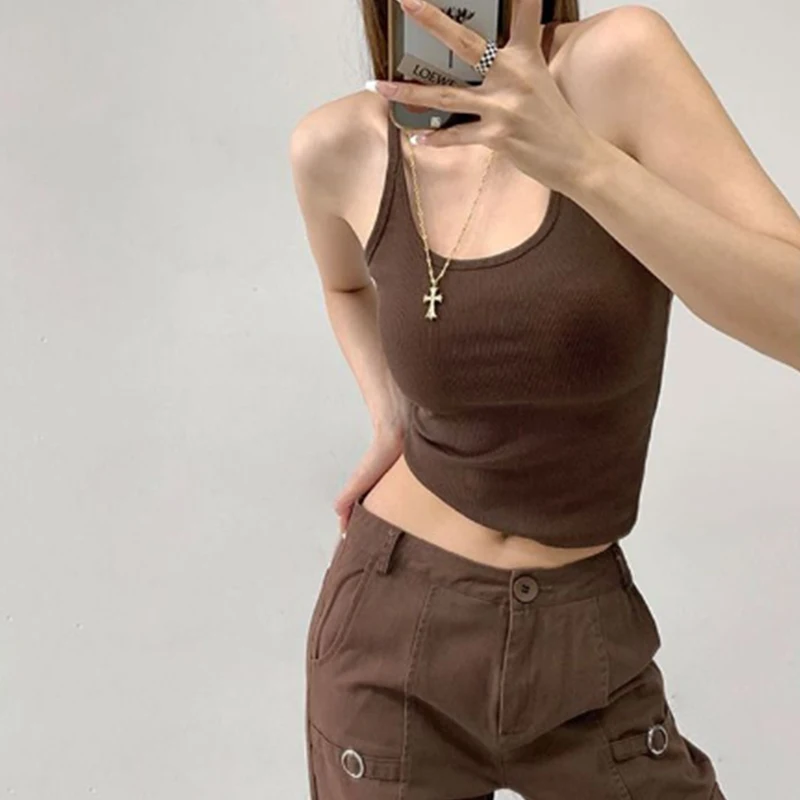 Lunivop Women Casual Camisole Summer Sleeveless Crop Tops Solid Color U Neck Slim Fit Backless Vest for Party Club Y2K Streetwear